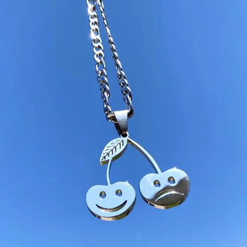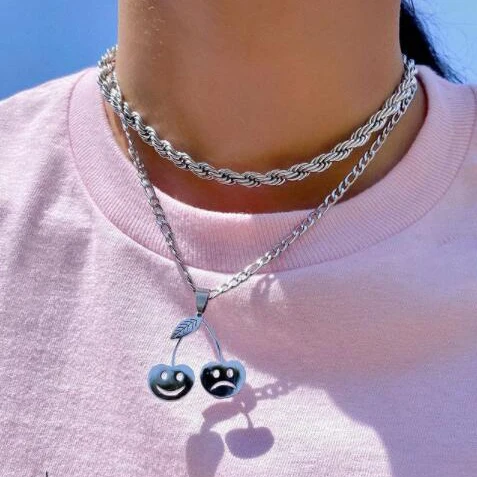 90s Aesthetics Cherry Pendant Necklace For Women Punk Hip Hop Unisex Jewelry Figaro Chain
