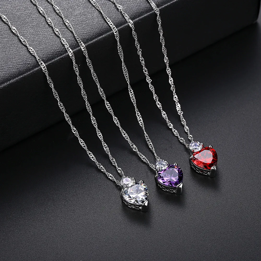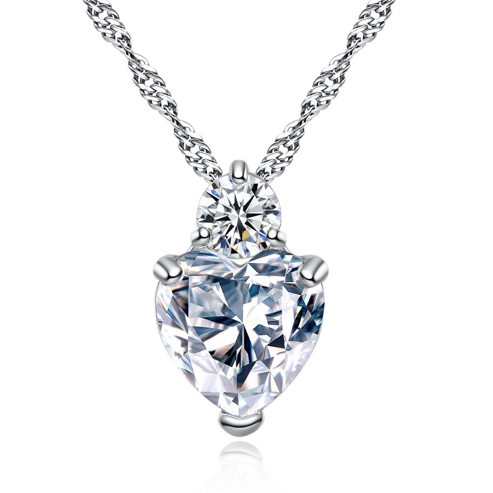 925 Silver Heart-shaped Chain Necklace Crystal Jewelry Fashion Wedding Party Jewelry Accessories Necklaces & Pendants for Women
