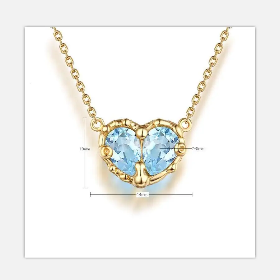 925 silver heart-shaped topaz, Hibiscus stone necklace, a gift for a fashionable new design woman. J001
