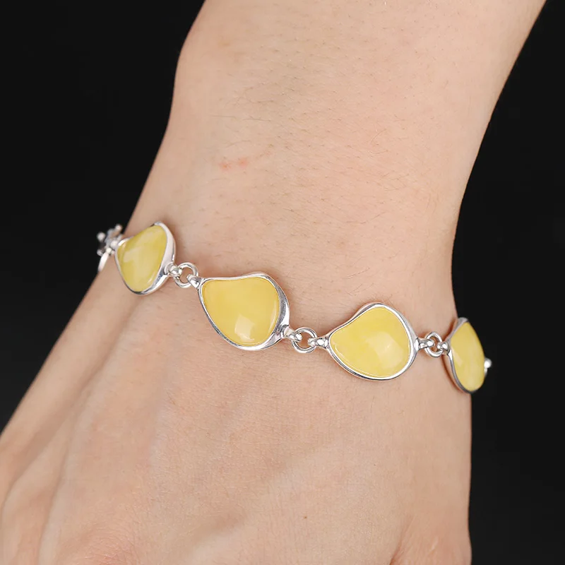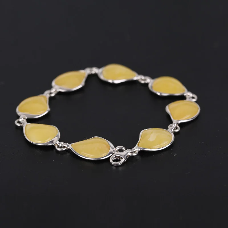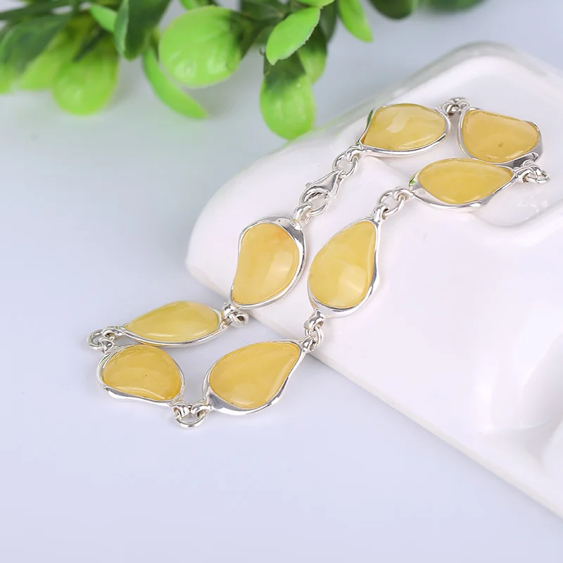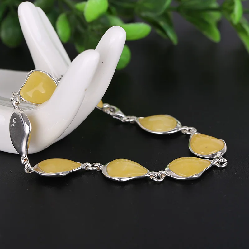 925 silver inlaid natural amber bracelet accessories for fashionable fashion balls