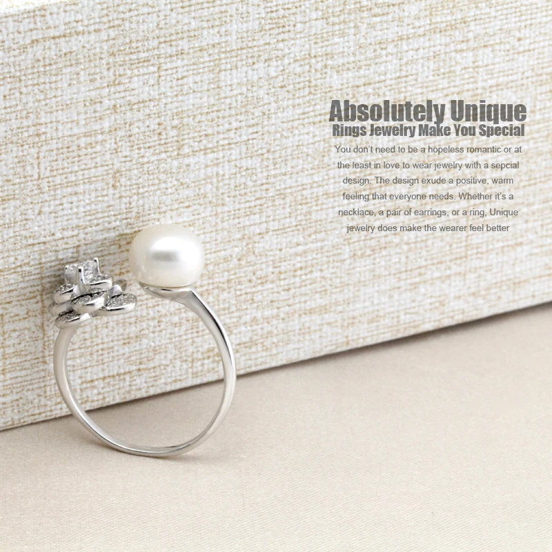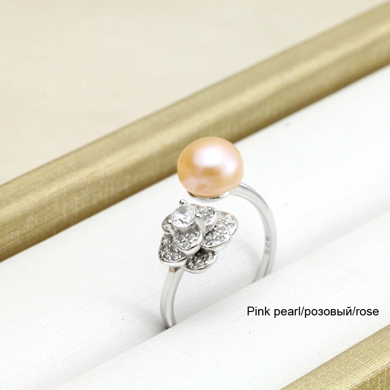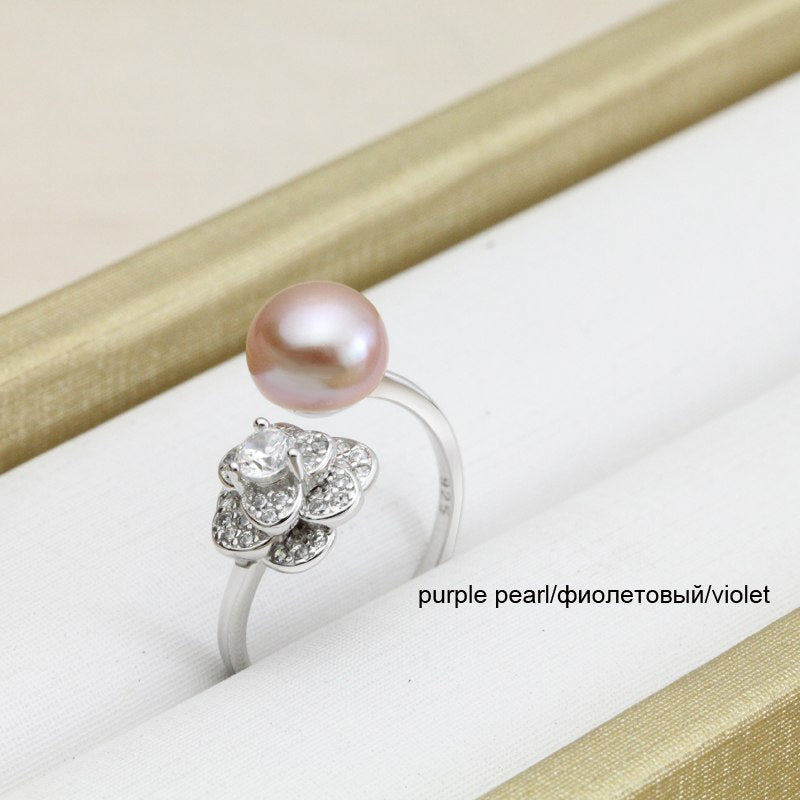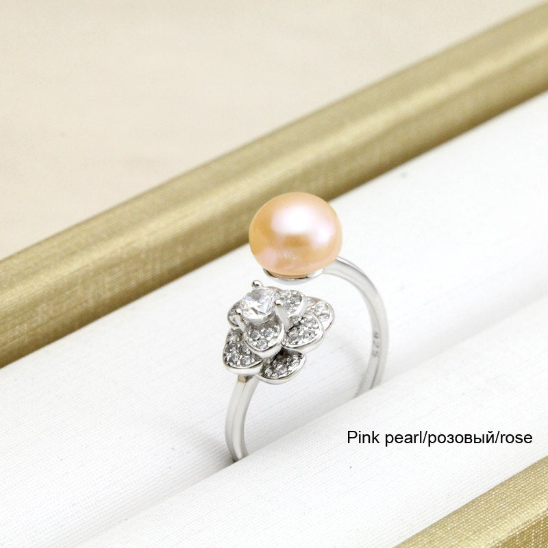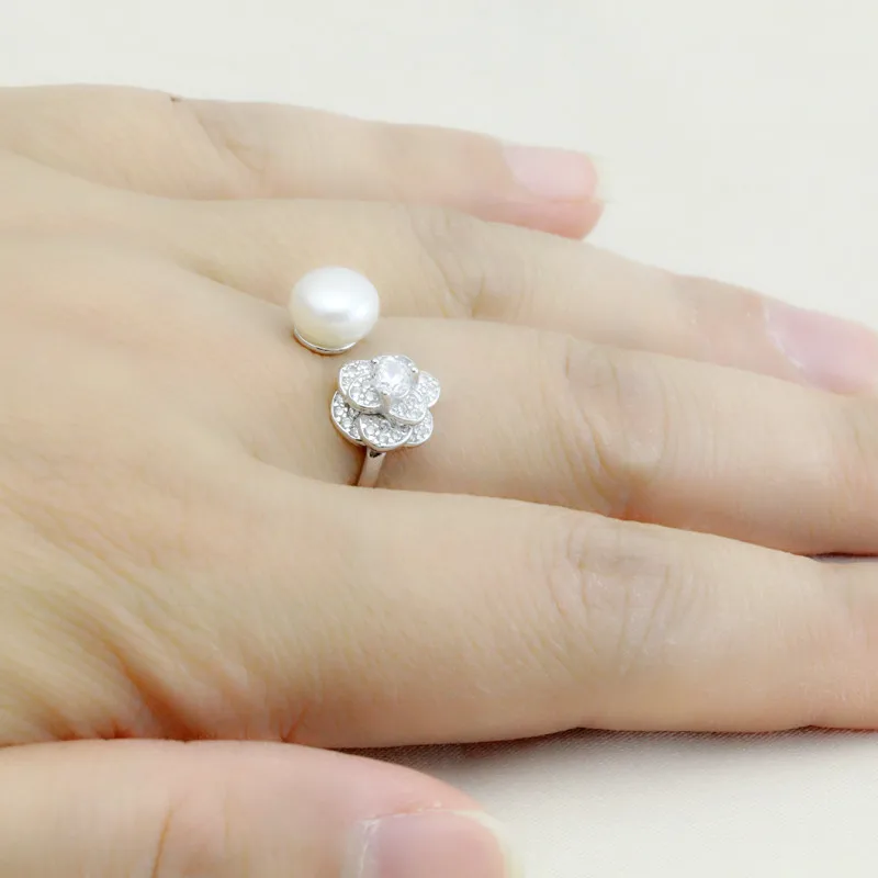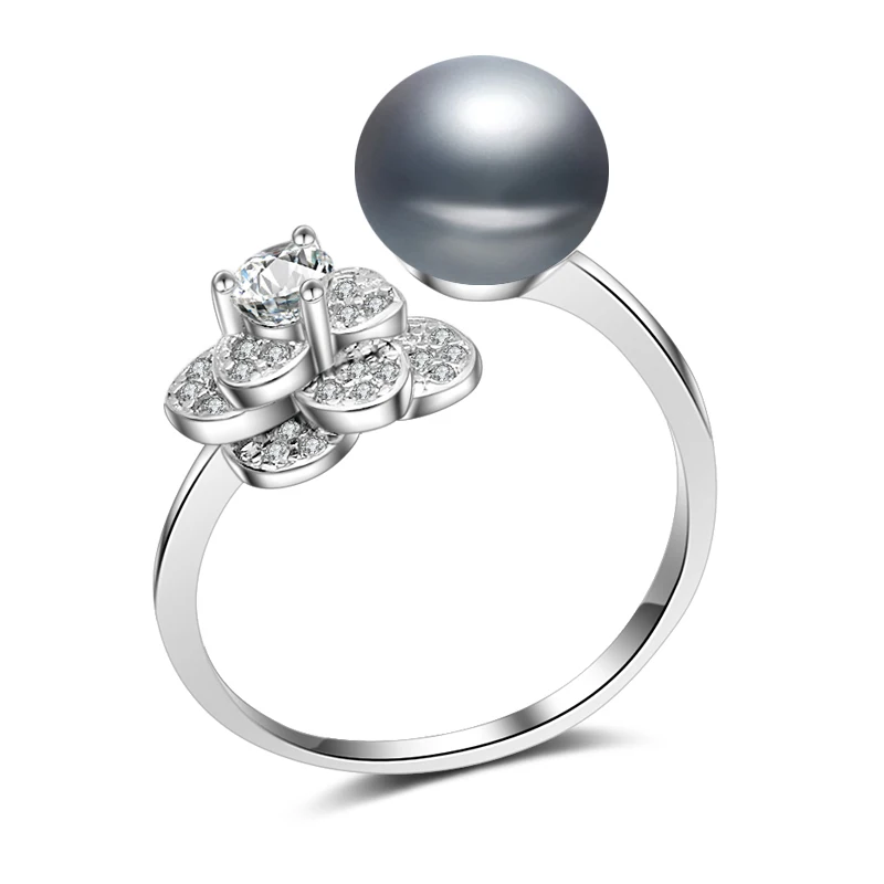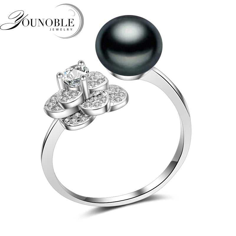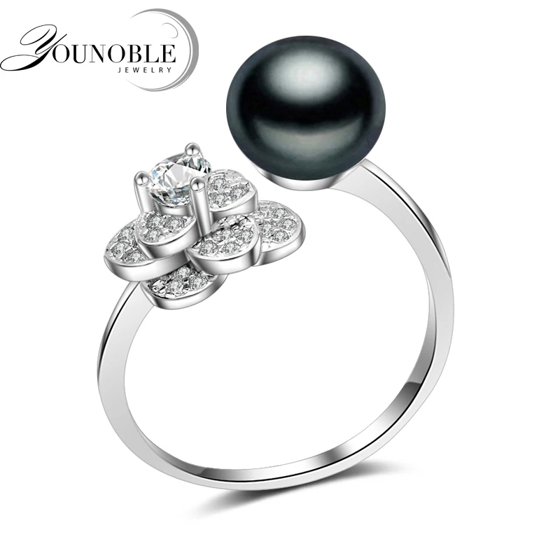925 silver open flower ring women party gift,Genuine white black gey natural pearl ring