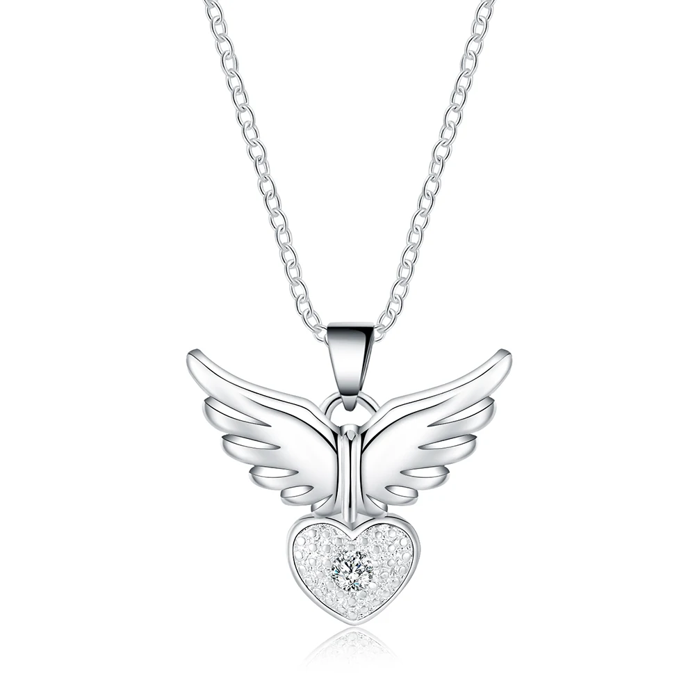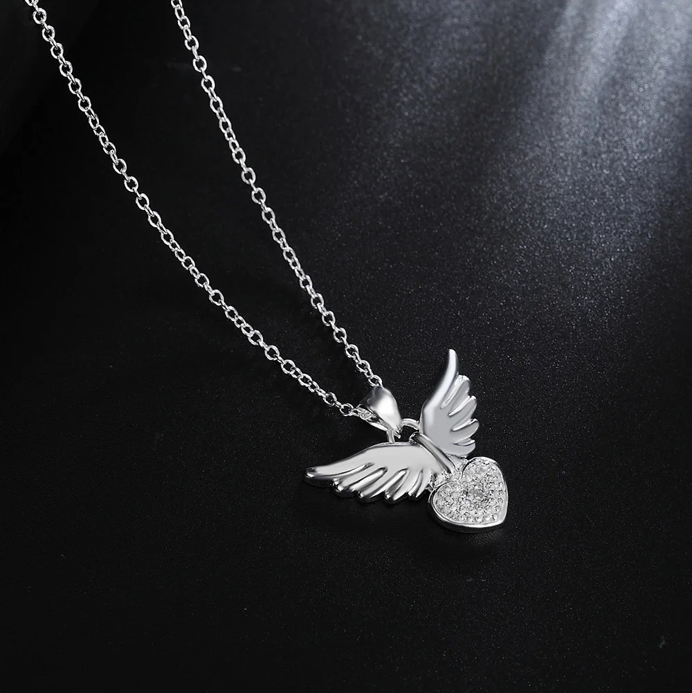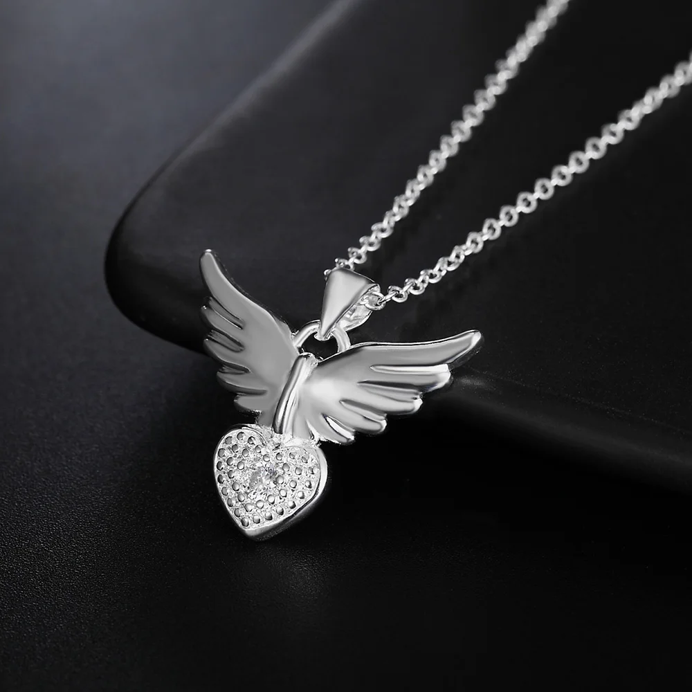 925 Stamp Silver Color 18 Inches Angel Wing Heart Womans Zircon Necklaces & Pendants Link Chain Party Girl Jewelry