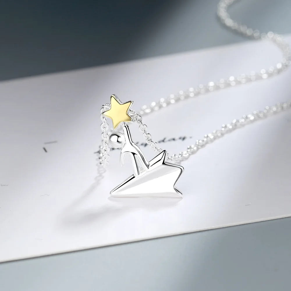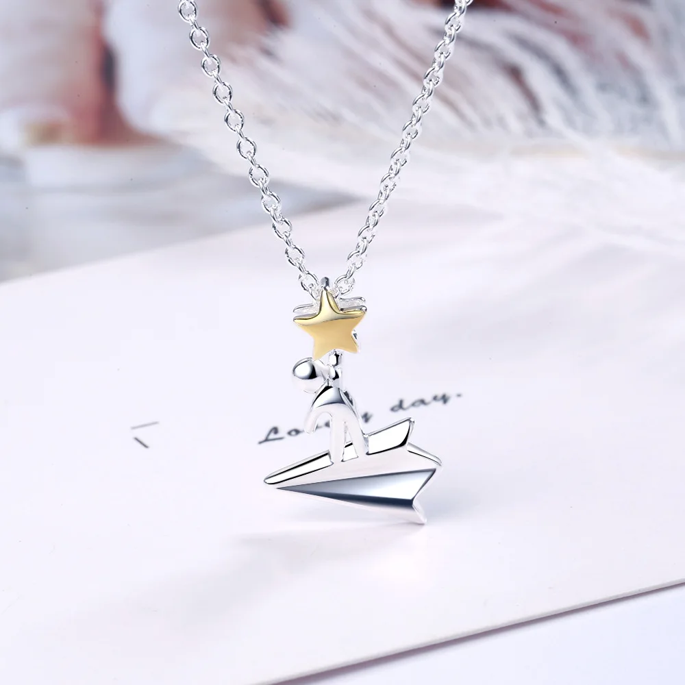 925 Stamp Silver Color Cute Aircraft Pendant And Necklaces For Women 18Inch Chain Wedding Party Jewelry Gift 2022 GaaBou