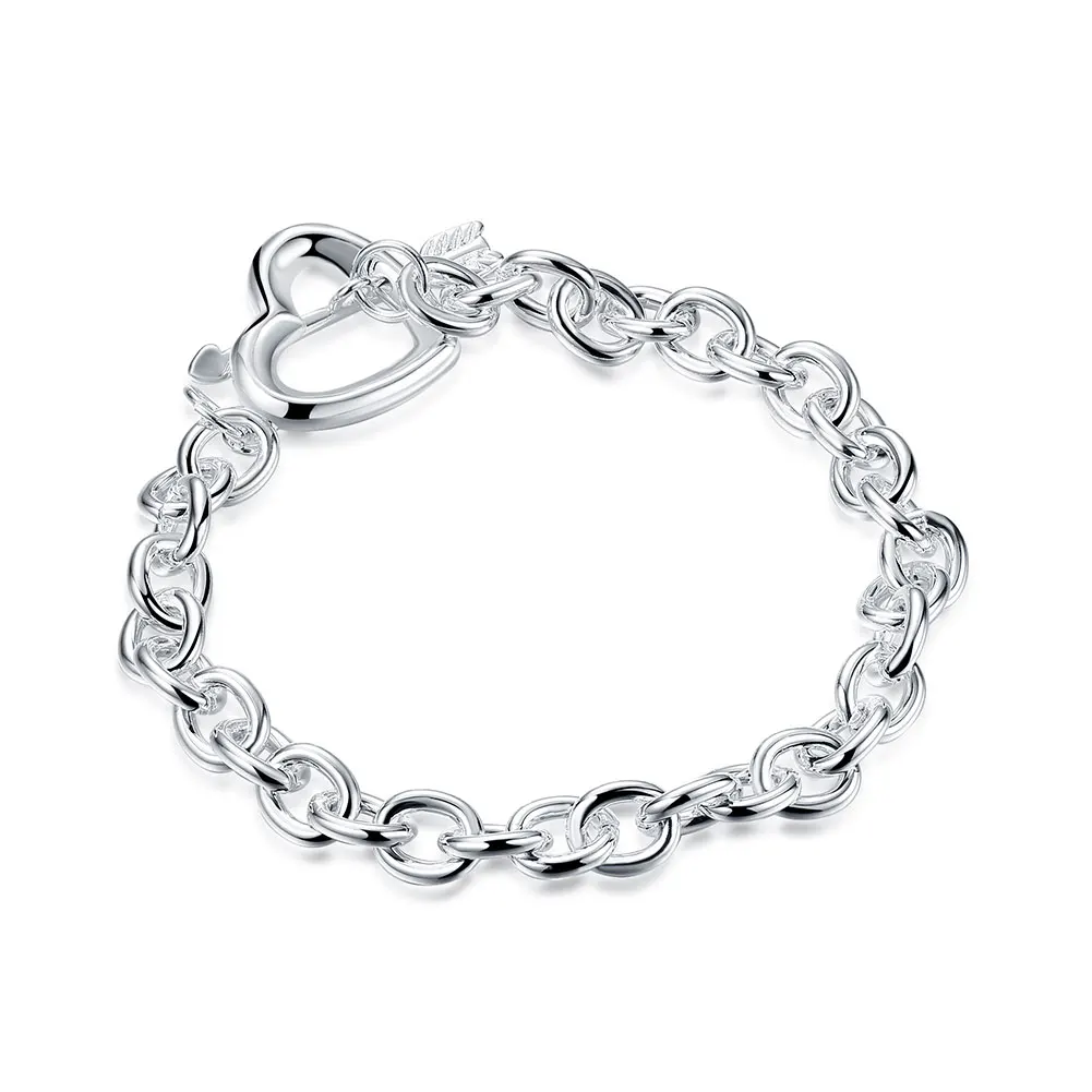 925 Stamp Silver Color Jewelry heart LOVE Bracelets Bangles Woman Geometry Lucky Chain Line Wedding Engaged Party Christmas