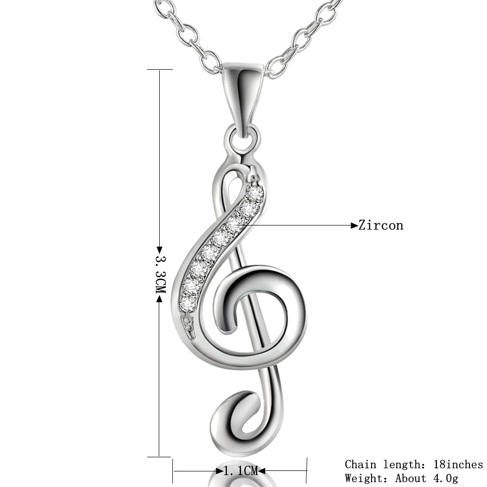 925 Stamp Silver Color Necklace Pendant Zircon Choker Lucky Wedding Retro Music Note Charm Gifts Elegant Jewelry Gift