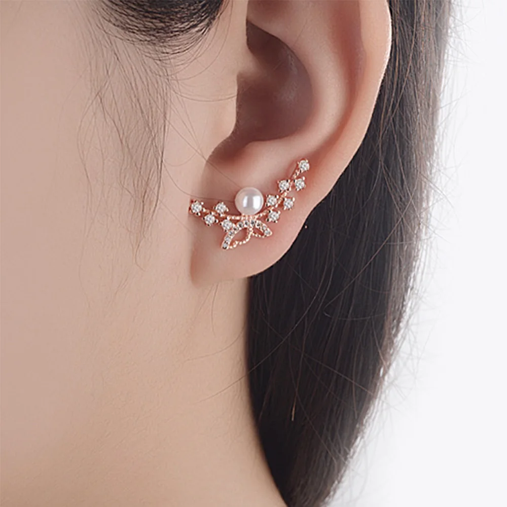 925 Stamp Silver Color Women Charm Jewelry Earrings Butterfly Zircon Stud Earing Christmas Charm Girls Gifts