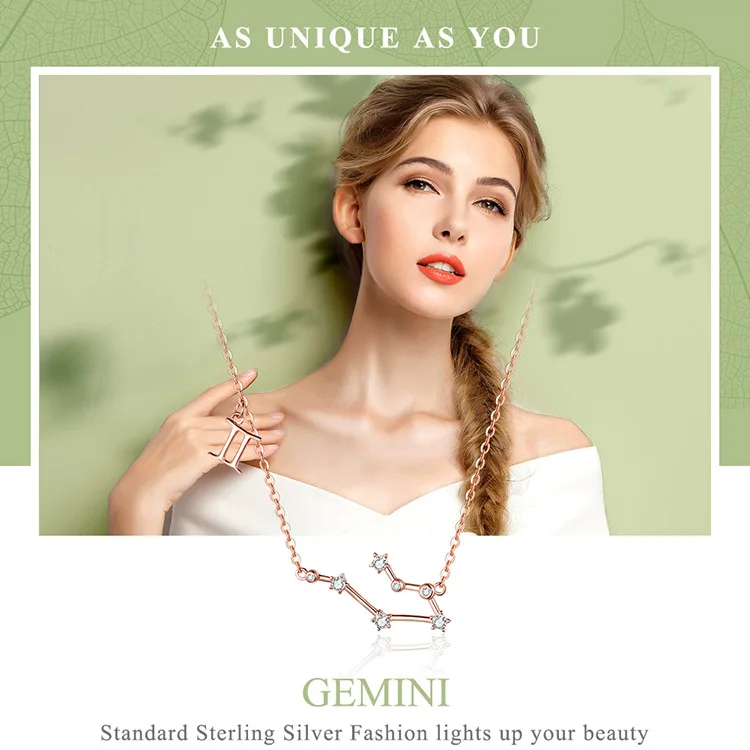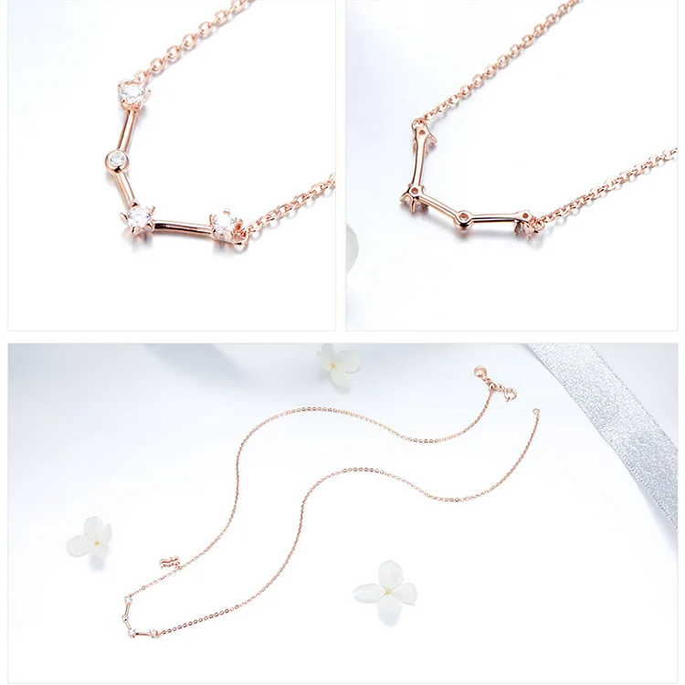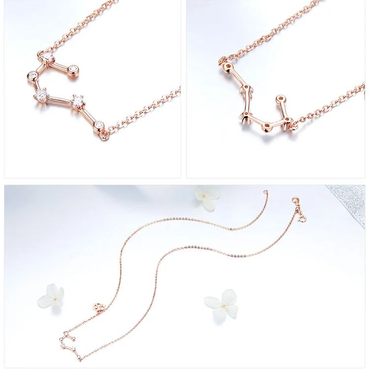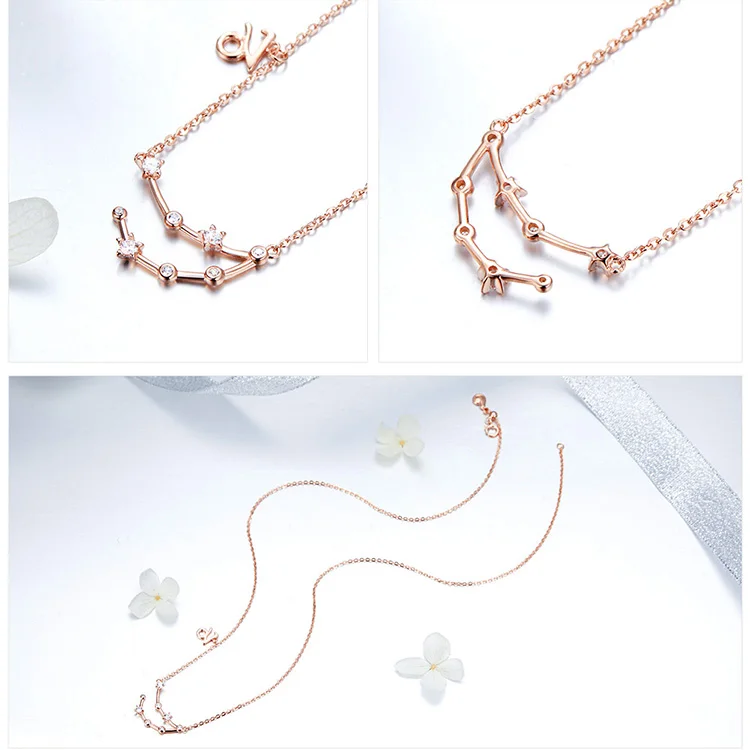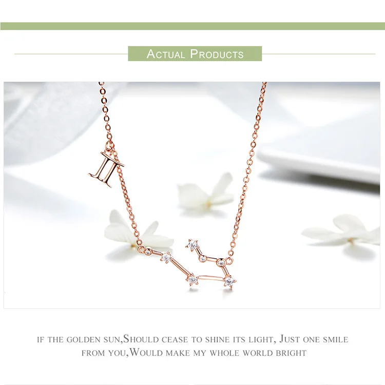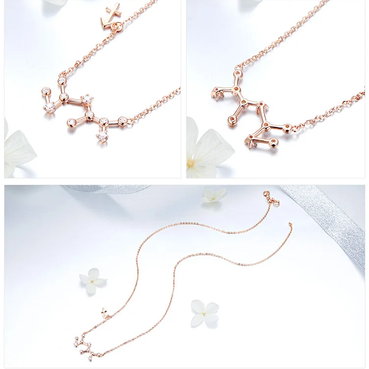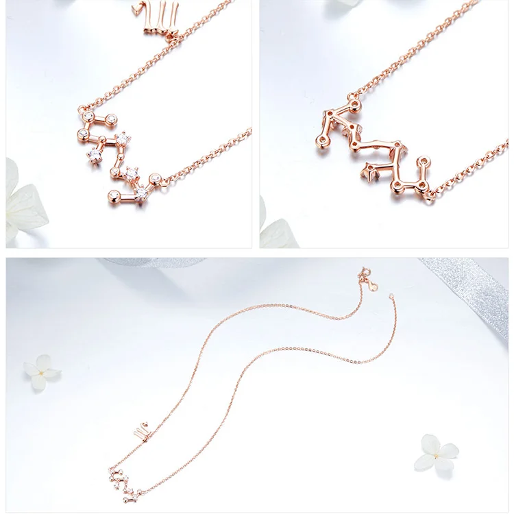 925 sterling silver 12 constellation rose gold pendant necklace fit women clear CZ necklace jewelry wedding gift