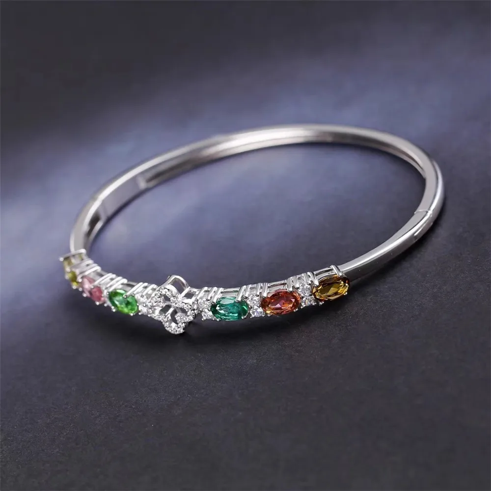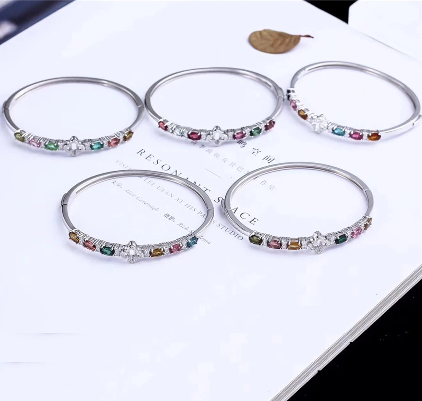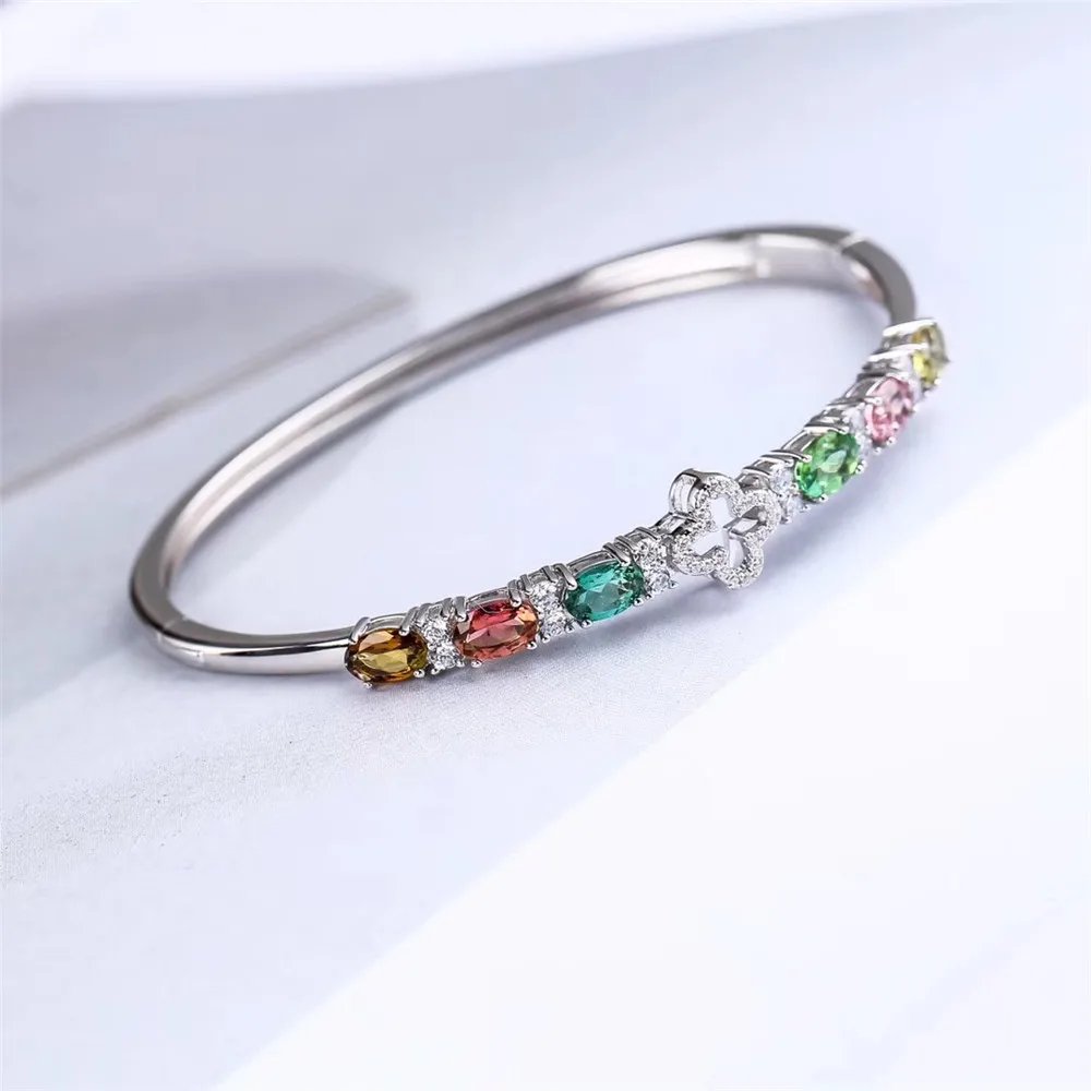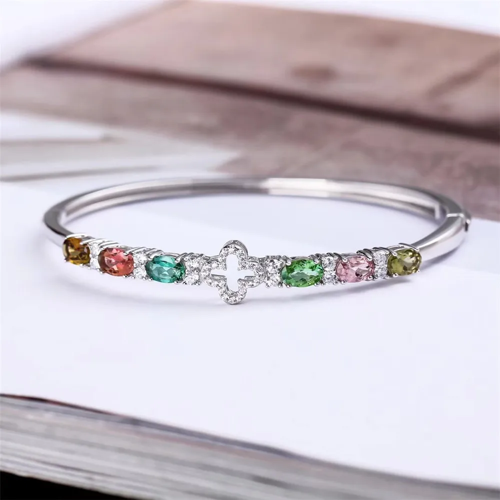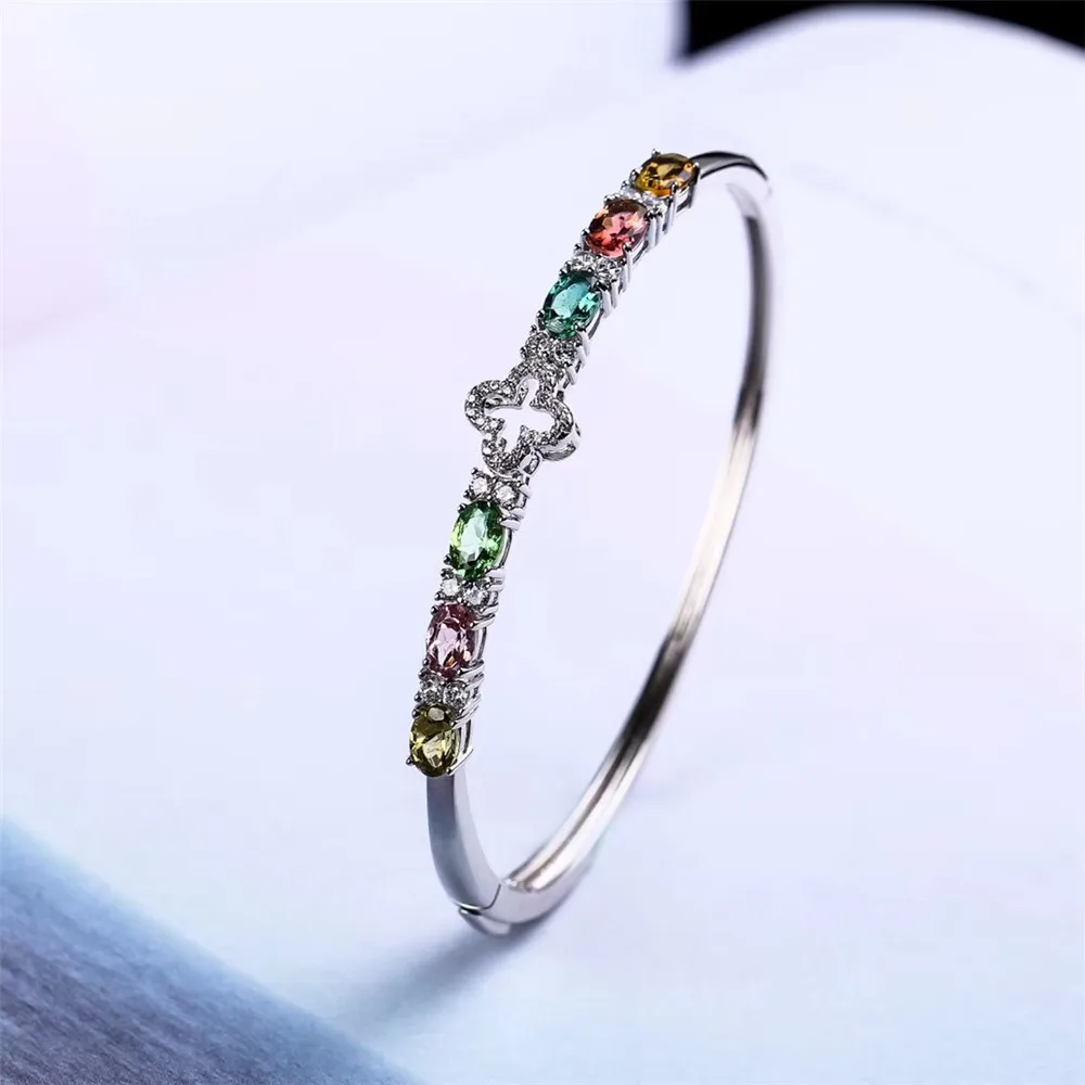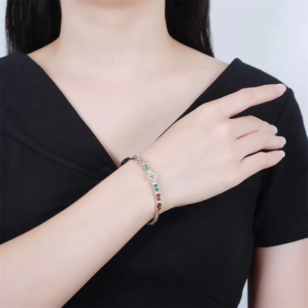 925 Sterling Silver Bracelet Natural Tourmaline Inlays 2020 Exquisite And Generous Bracelet Gift Jewelry Girl Rainbow Stone
