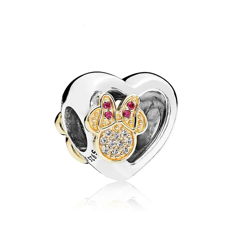 925 Sterling Silver Cartoon Beads Golden Heart Shaped Birthday Charms Fit Original Pandora Bracelet Women DIY Jewelry