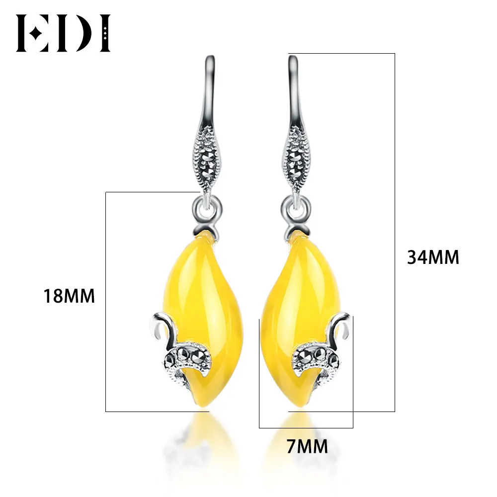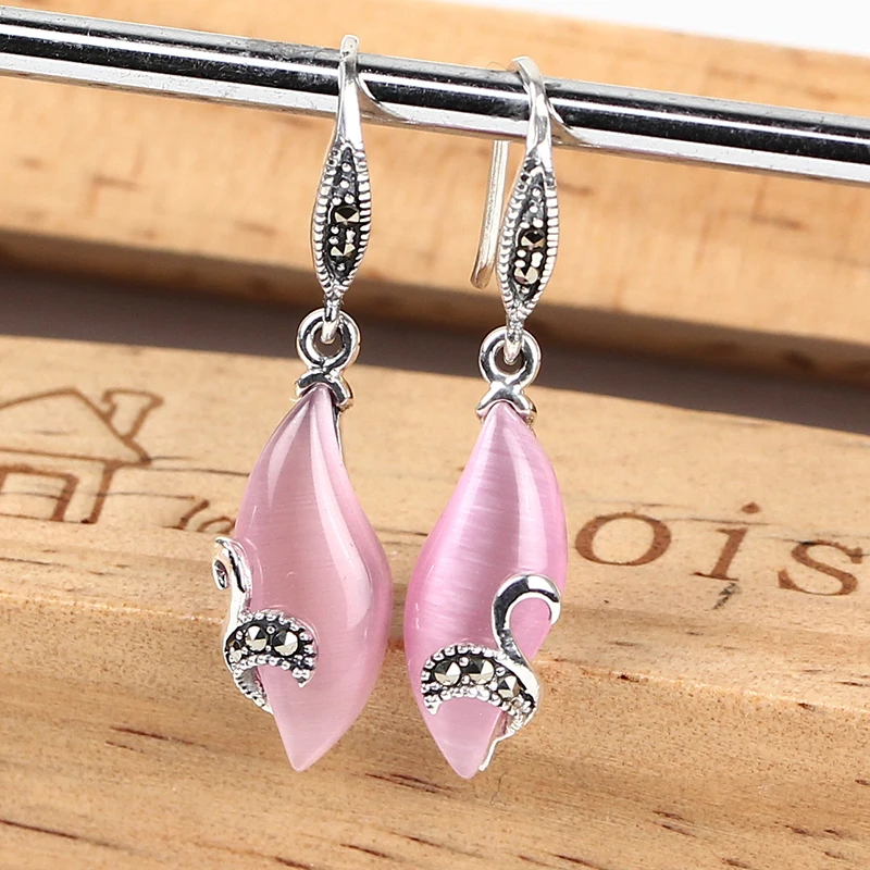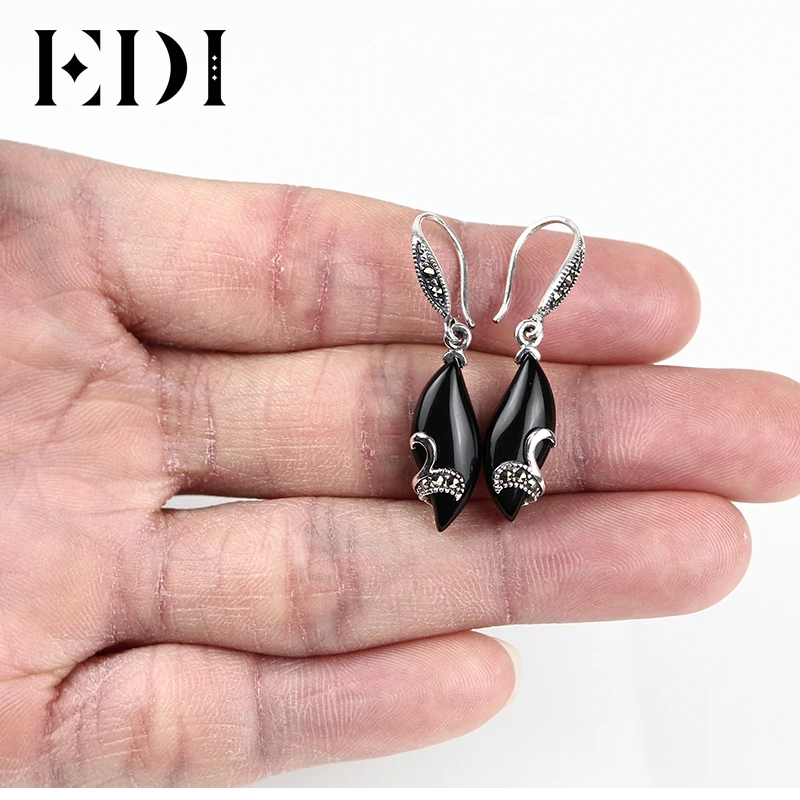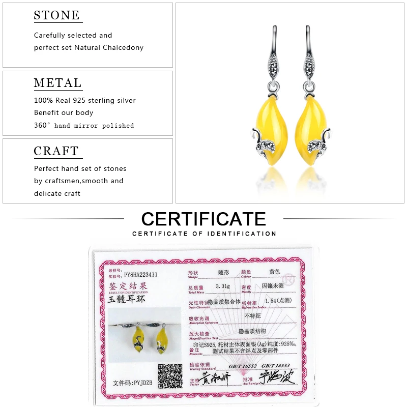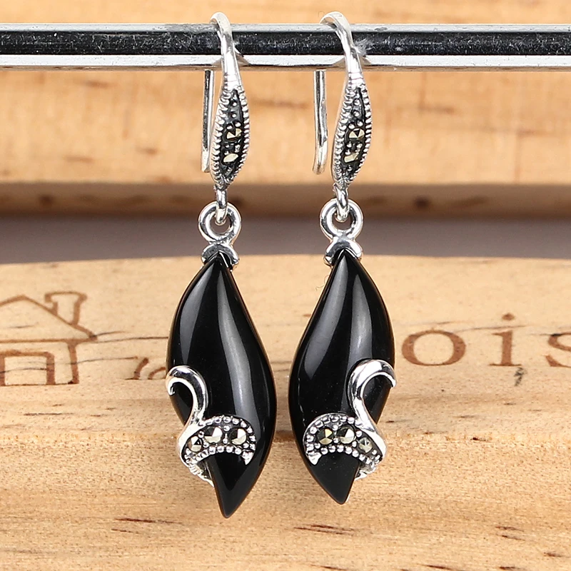 Woman Vintage 925 Sterling Thai Silver Garnet Drop Earring Chalcedony Gems Long Dangle Charm Earrings Fine Jewelry For Women