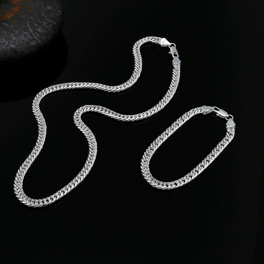 925 sterling Silver Charms man 6MM geometric chain bracelets neckalces for women Party wedding jewelry sets Holiday gift