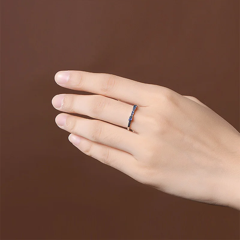 Rings For Women 100% Sterling Silver 925 Fine Jewelry Blue Spinel Sparkling Bow Knot Stackable Korean Style Cute For Girls
