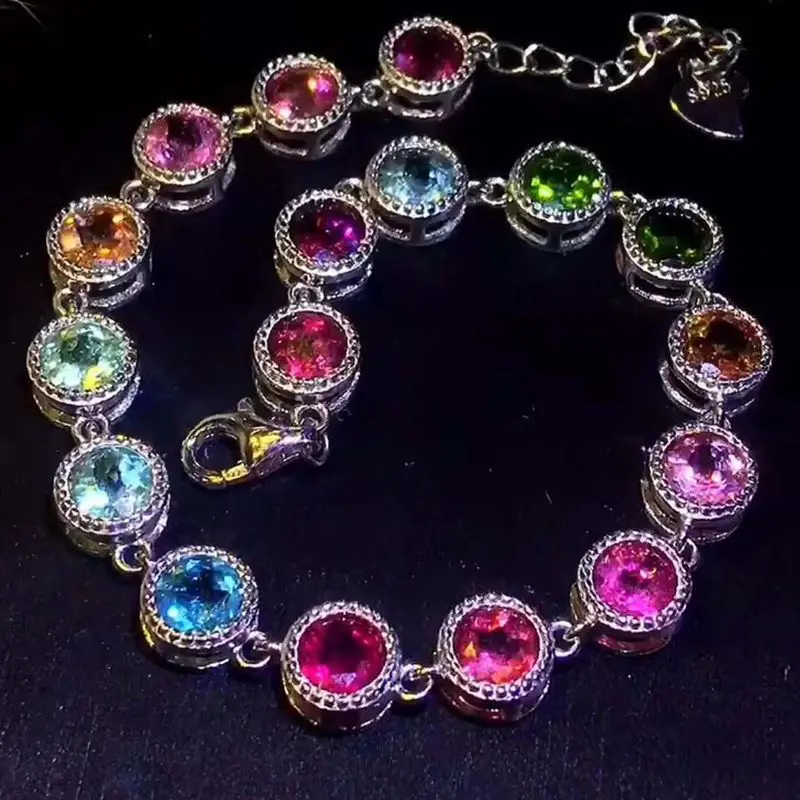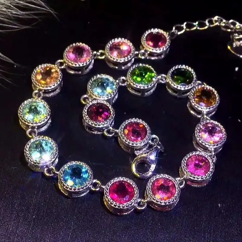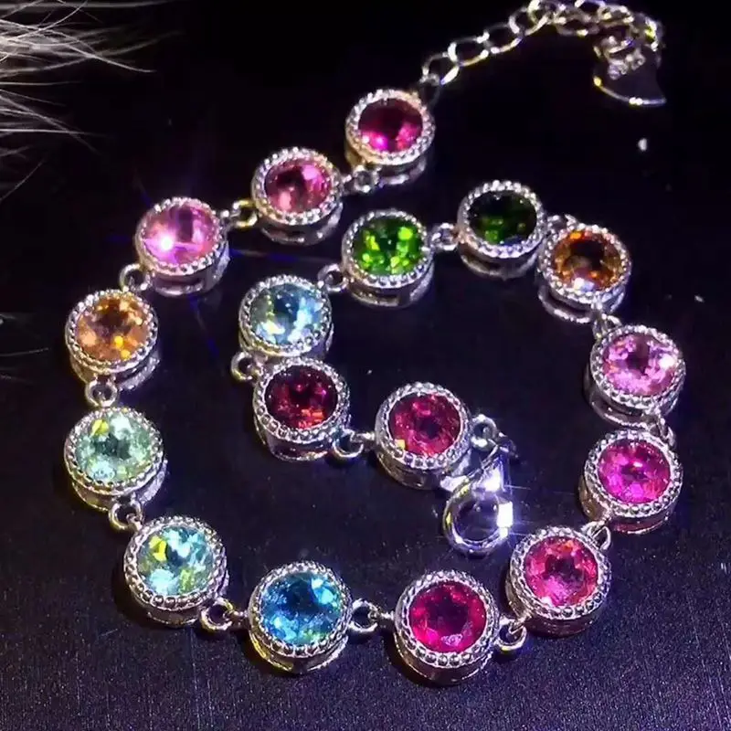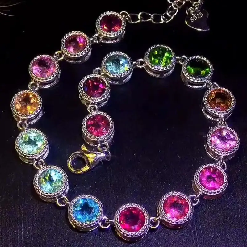 925 Sterling Silver Color Brazil Tourmaline Bracelet for Women Natural Gemstone 5 x 5 mm