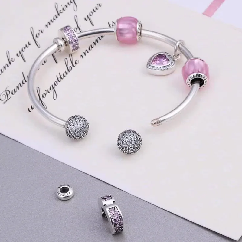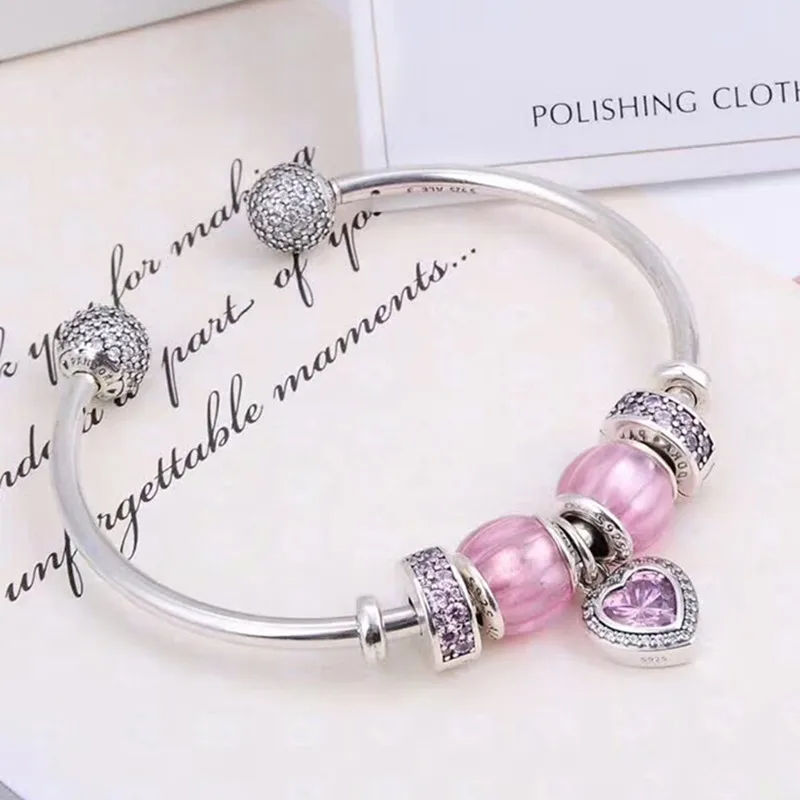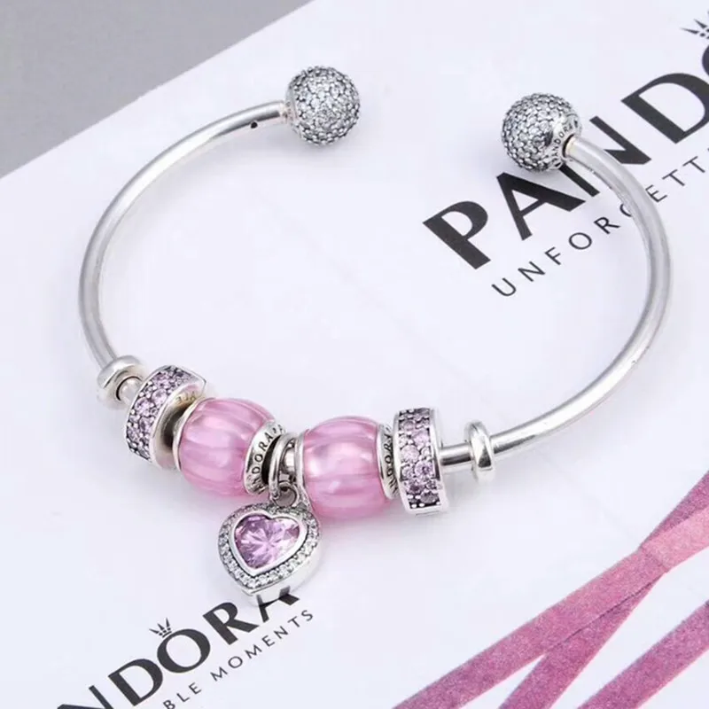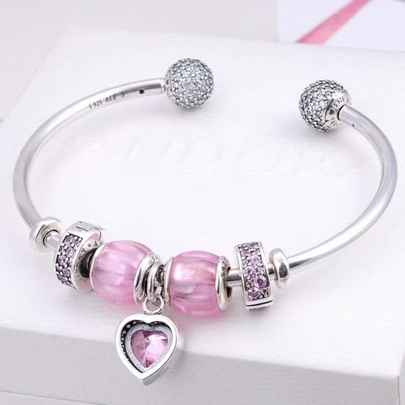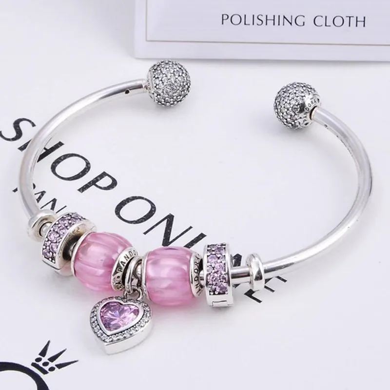 925 Sterling Silver Customizable Bracelet Bangle Adjustable Pink Wedding Party Bracelets for Women Fashion 2020 Silver Jewelry