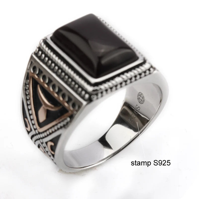 925 Sterling Silver Dark Brown Agate Setting Geometric Rectangle Stone for Men Engagement Jewelry
