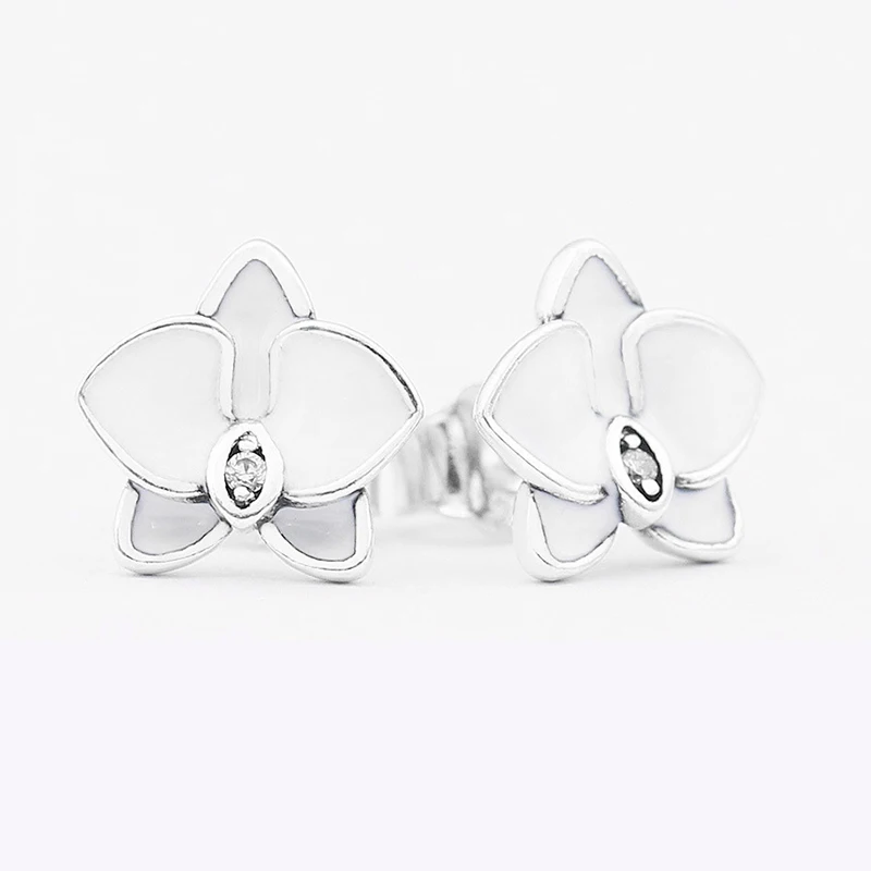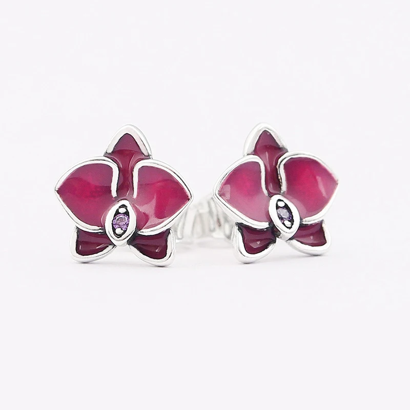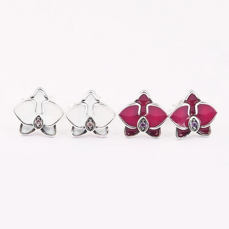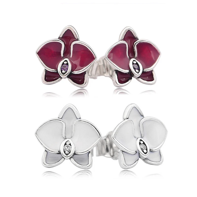 925 Sterling Silver Double Stud Earrings White Rose red Color Flower Crystal Earrings For Women Wedding Jewelry Gift HER333