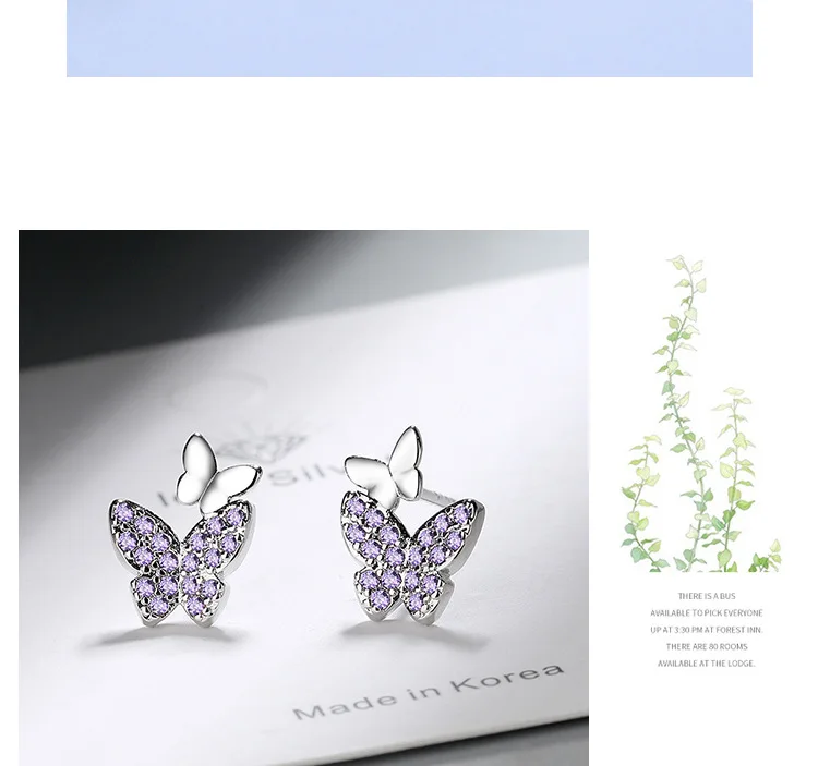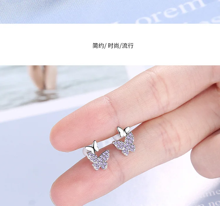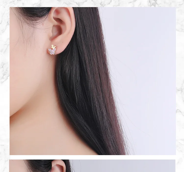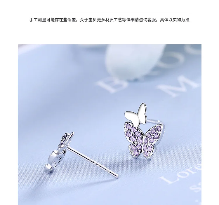 925 Sterling Silver Earrings delicacy butterfly Ear Stud Womens Party Jewelry Love Gift