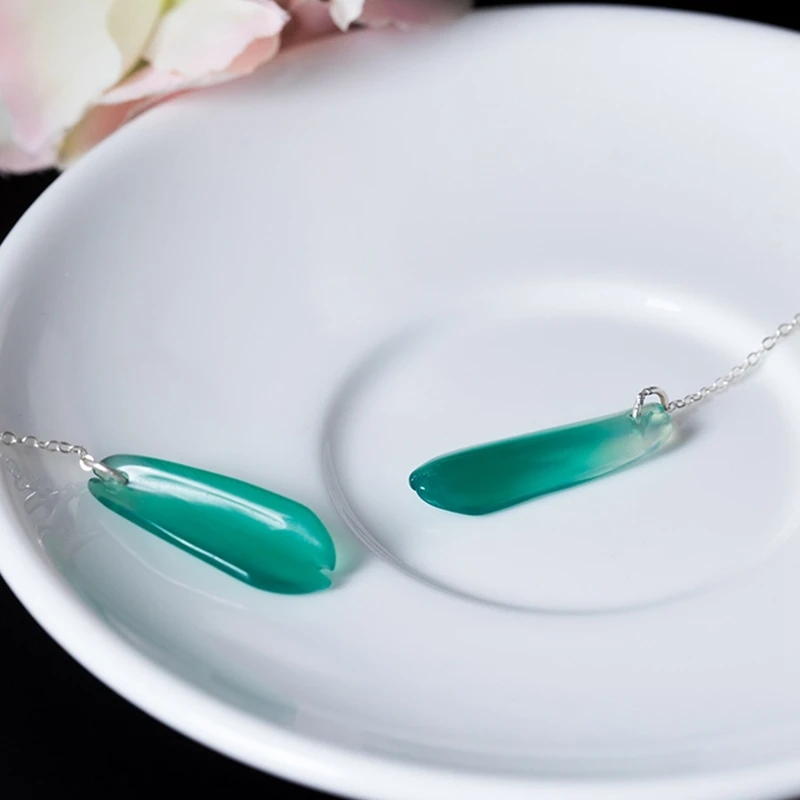 925 sterling silver green jade earrings handmade DIY jade petals fashion wild silver jade earrings for women jade jewelry charms