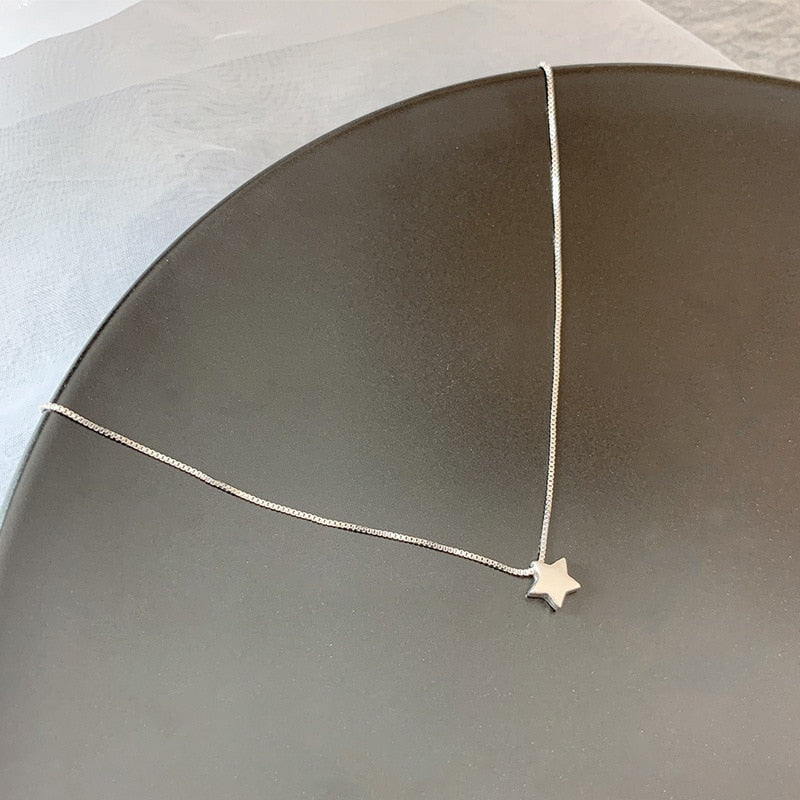 925 Sterling Silver Heart-shaped Necklace Female Clavicle Chain Shiny Star Pendant Simple Jewelry Party Birthday Gift