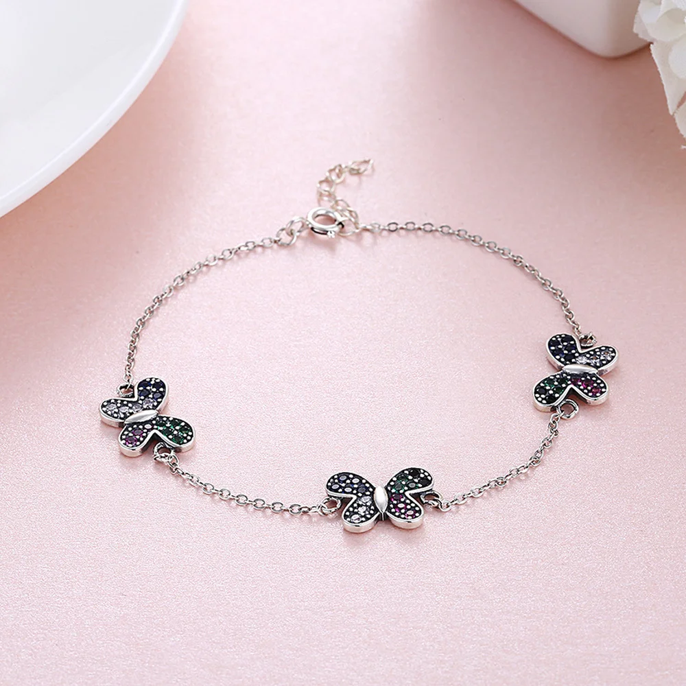 925 Sterling Silver Insect Butterfly Diamond Bracelet for Women Classic Trendy Style hand ornament Fine Jewelry Sweet Halloween