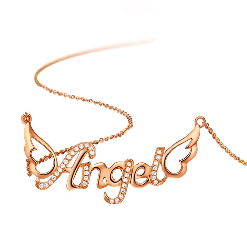 925 Sterling Silver Necklace Angel wings Letter Pendant Necklace Link Chain For Women Silver 925 Jewelry HN030