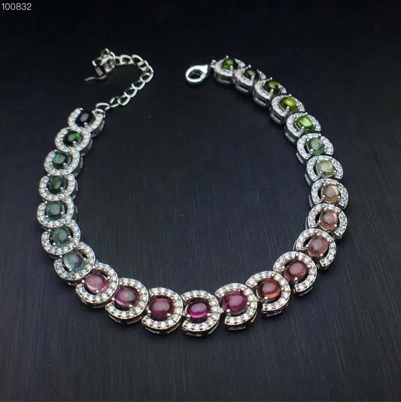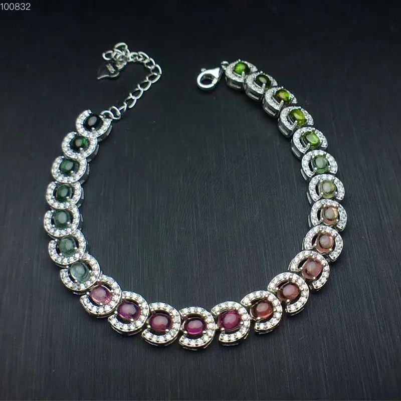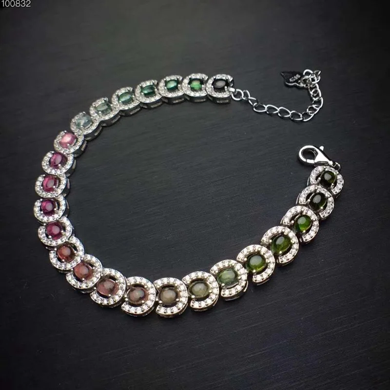 925 Sterling Silver Oval Brazil Tourmaline Bracelet for Women Natural Gemstone 3 x 4 mm