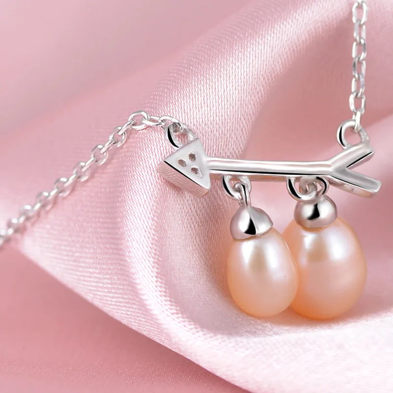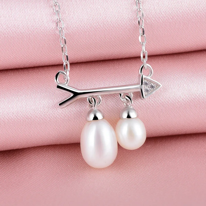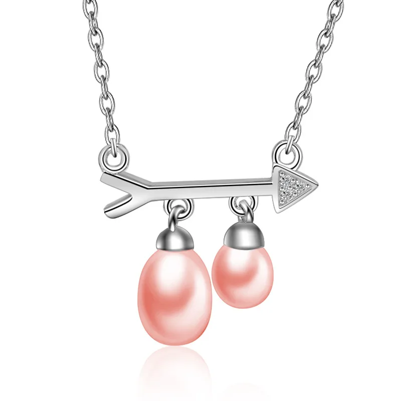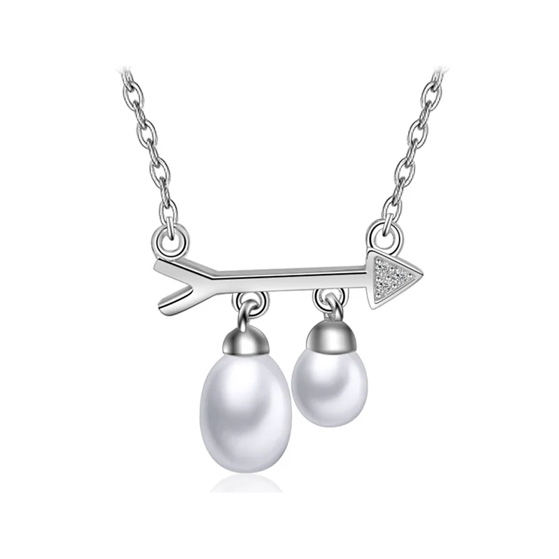 925 Sterling Silver Pendant Necklace with Pearl Arrow Symb Chains For Women HN033