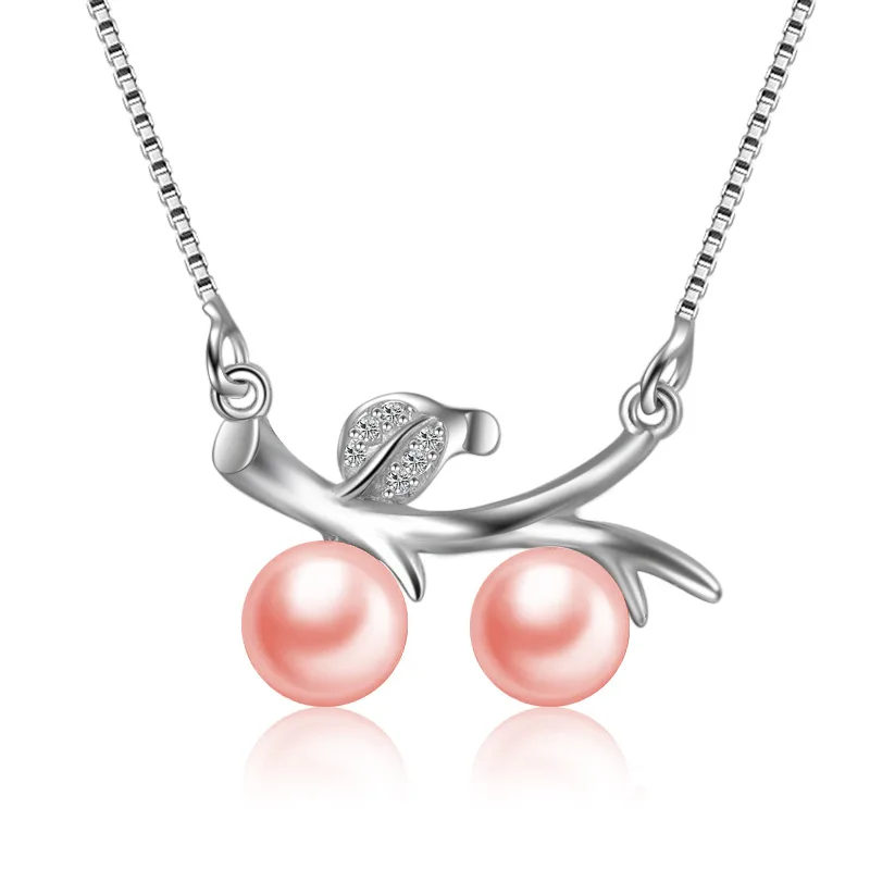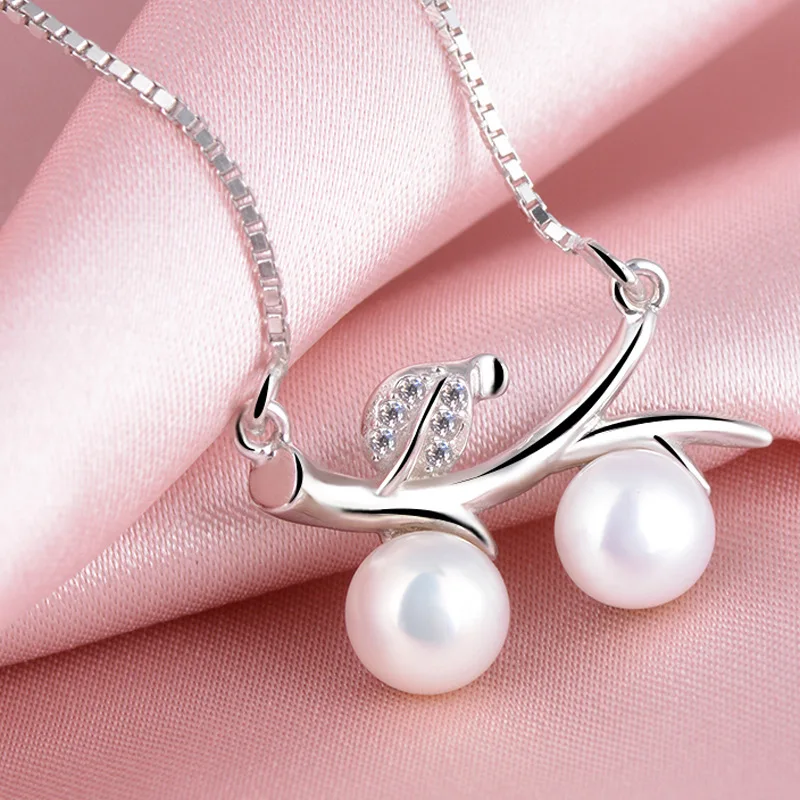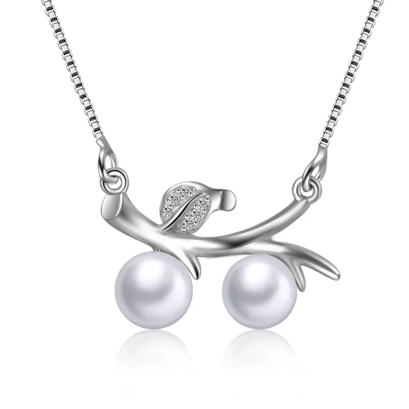 925 Sterling Silver Pendant Necklace with Pearl Branches Style Chains For Women HN032