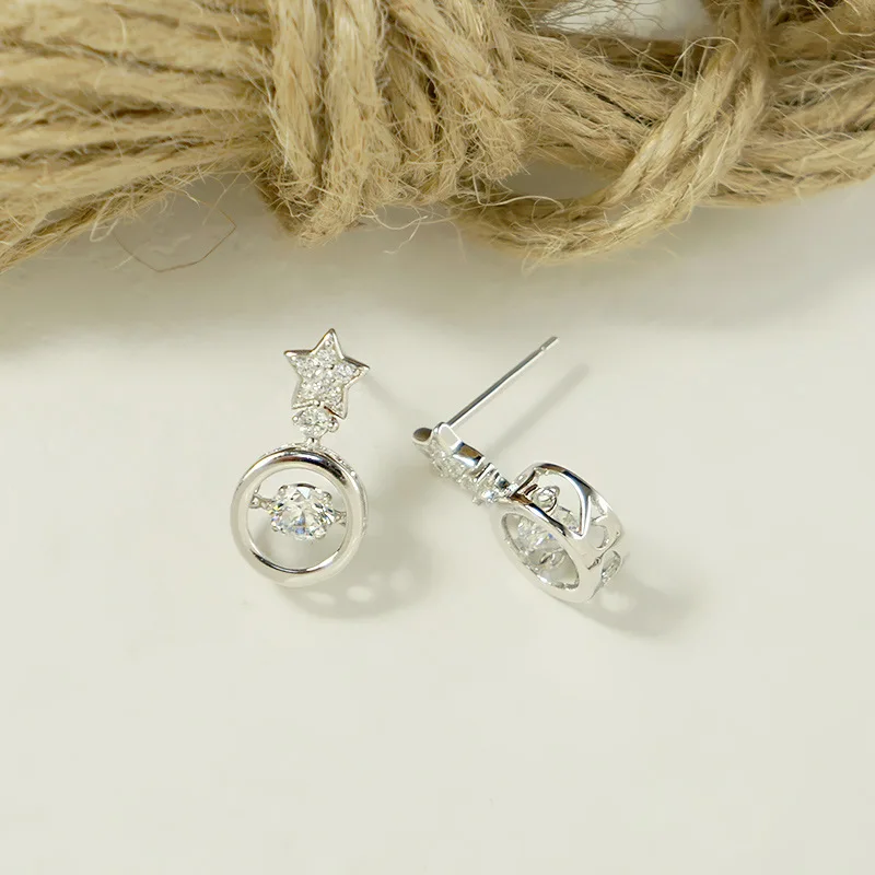 925 sterling silver Pentagram-star AAA zircon stud earrings smart Series beating heart design earrings for women charms jewelry