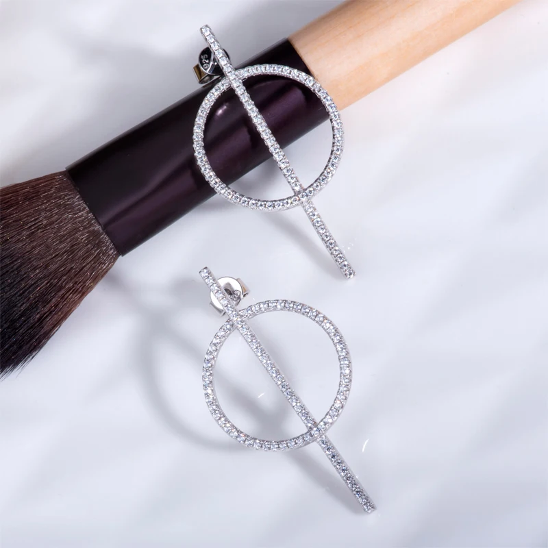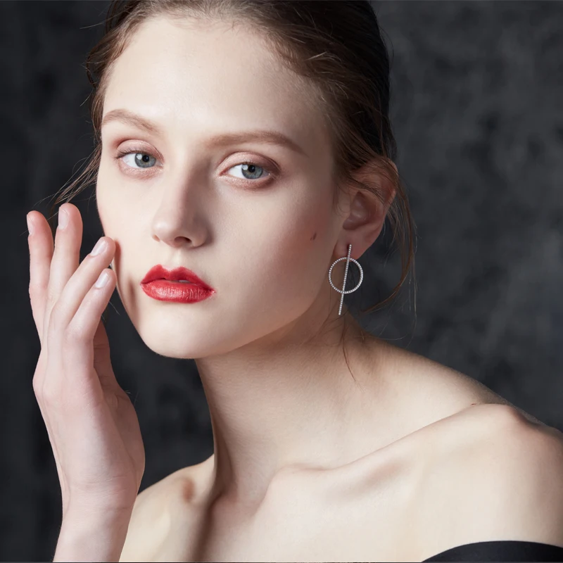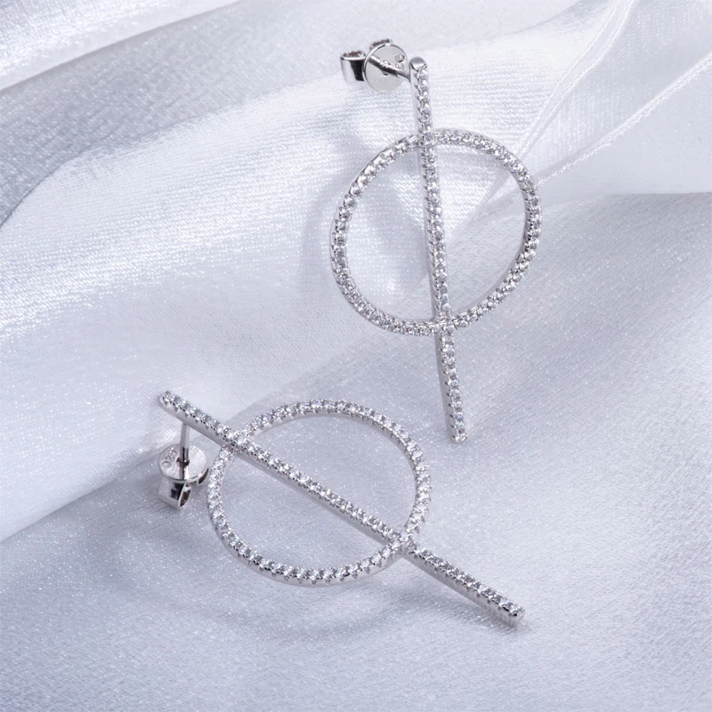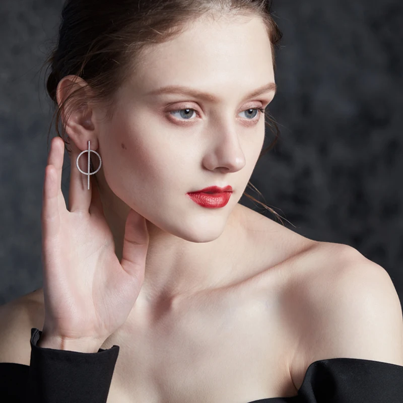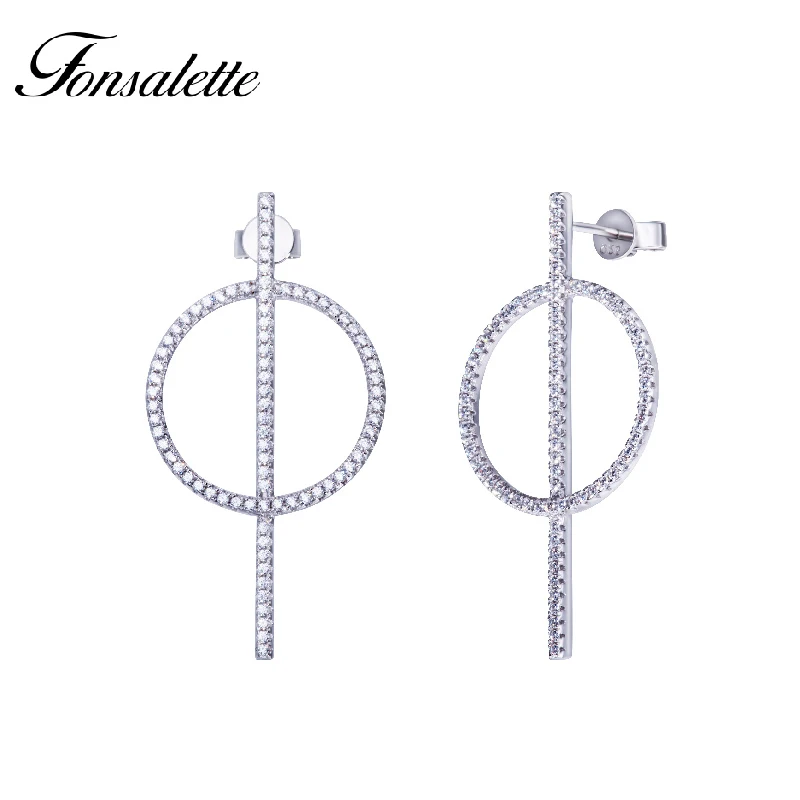 925 Sterling Silver Post Geometric Circle Round Loop Earrings Cubic Zirconia Drop Ear Brincos Women Jewelry gift ZK30