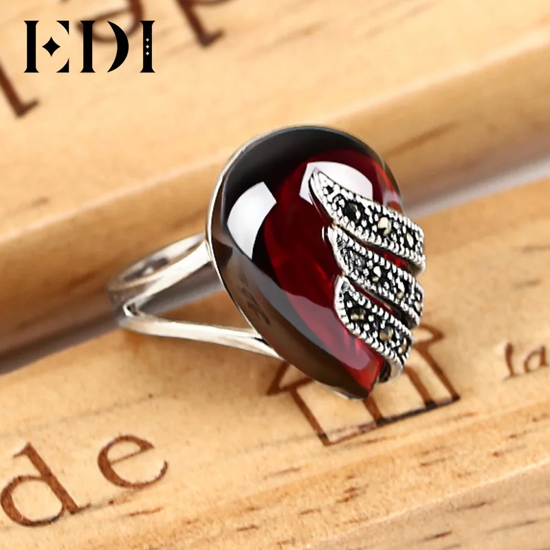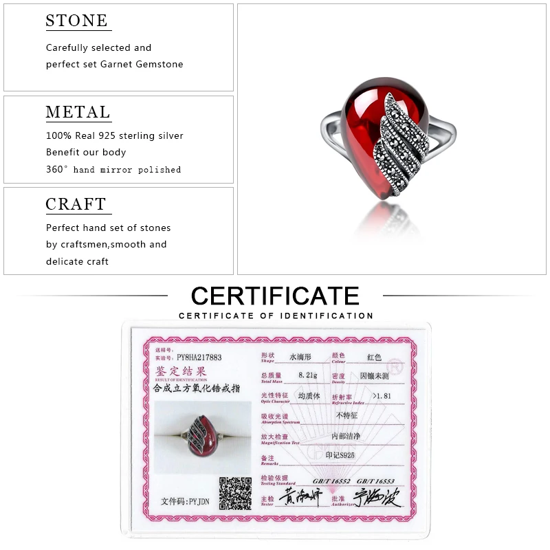 Unique 925 Sterling Silver Ring 5ct Simulated Garnet Party Ring For Women Water Drop Shape Fine Jewelry Gifts