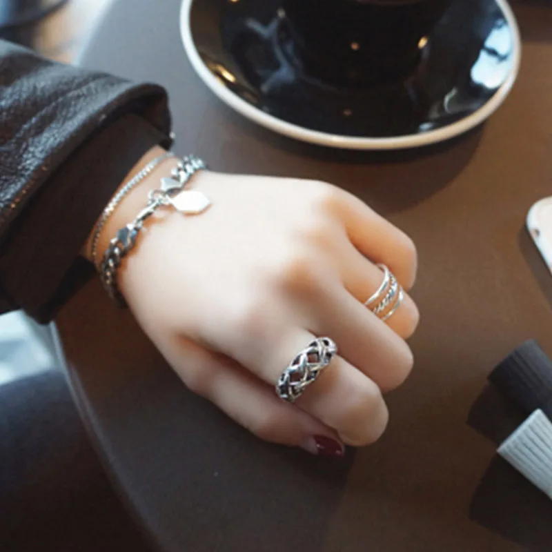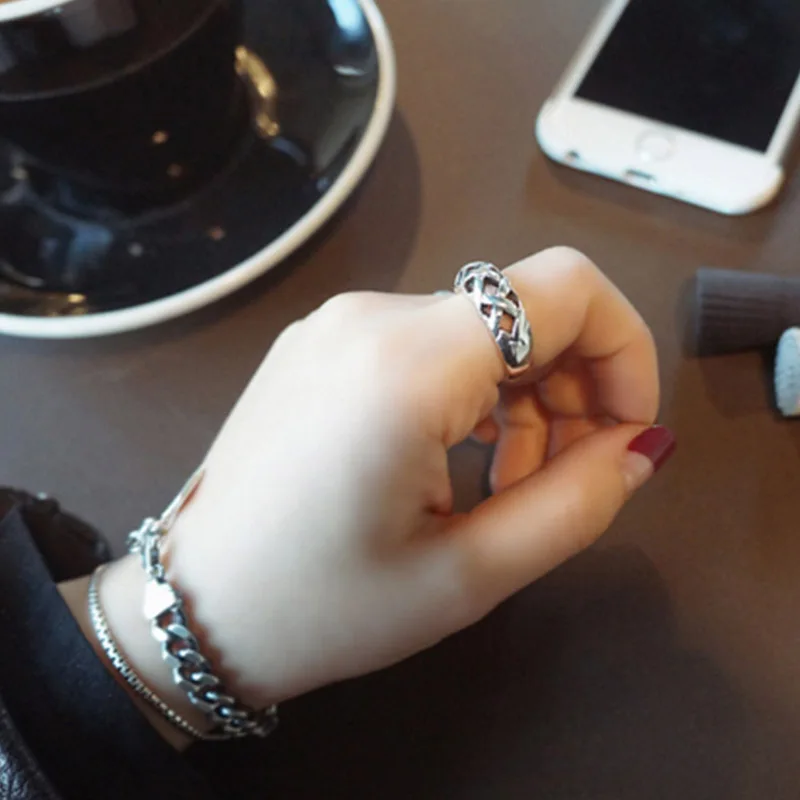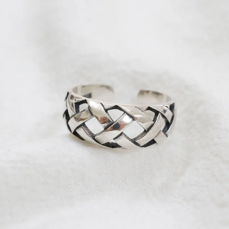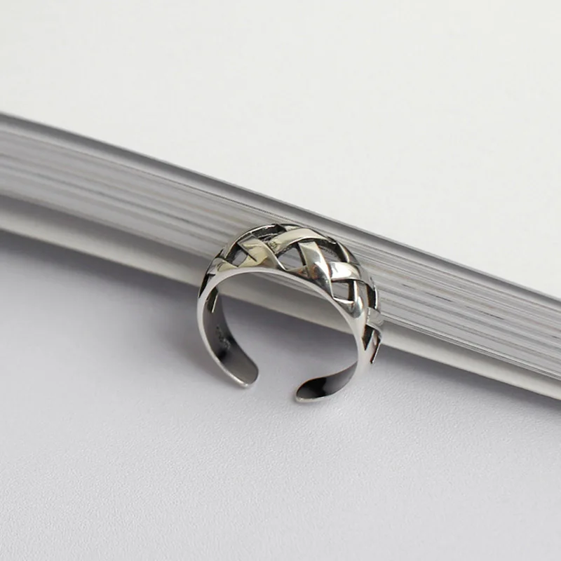 925 Sterling Silver Rome Pattern Textile Convex Adujustable Ring Opening Lady Vintage Fashion Silver Jewelry