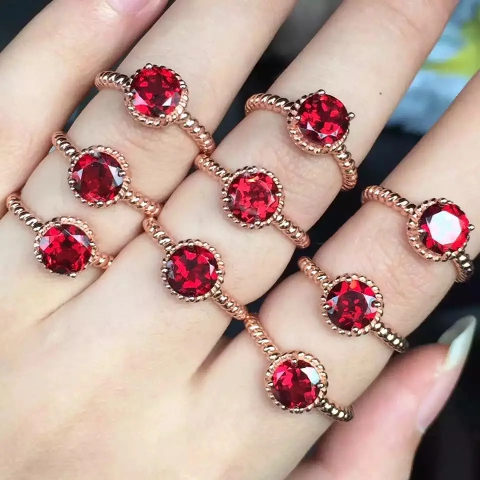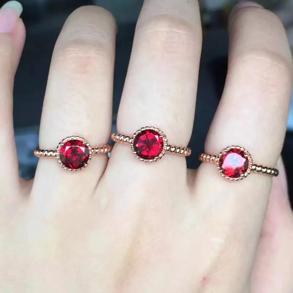 925 Sterling Silver Round Garnet Ring for Anniversary Red Natural Gemstone 7*7 mm