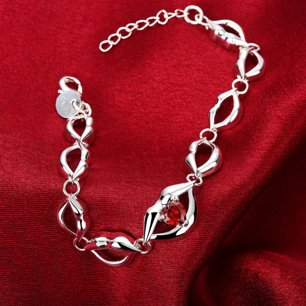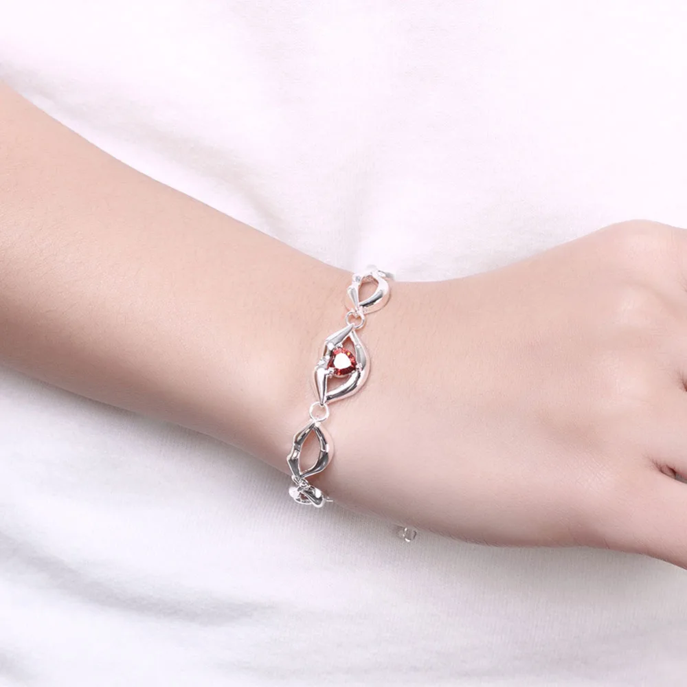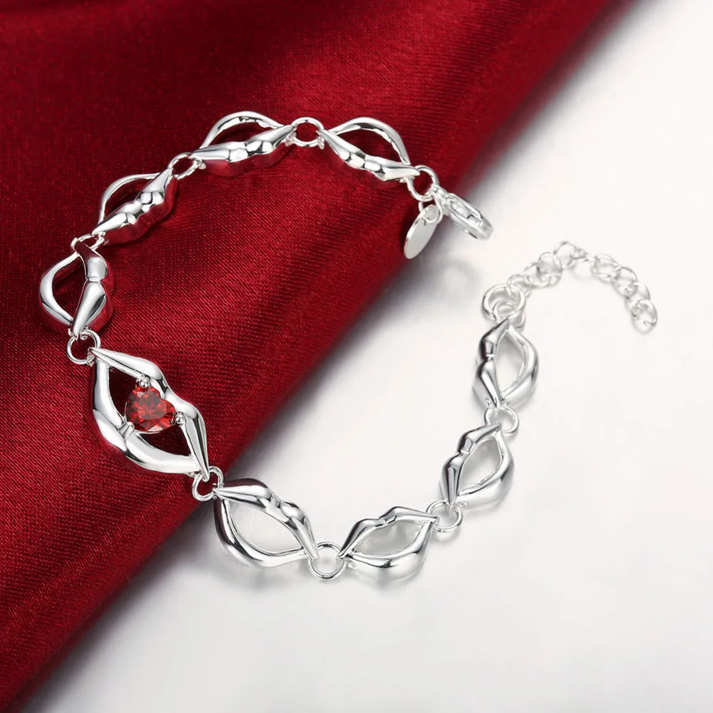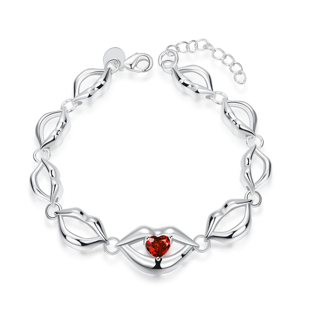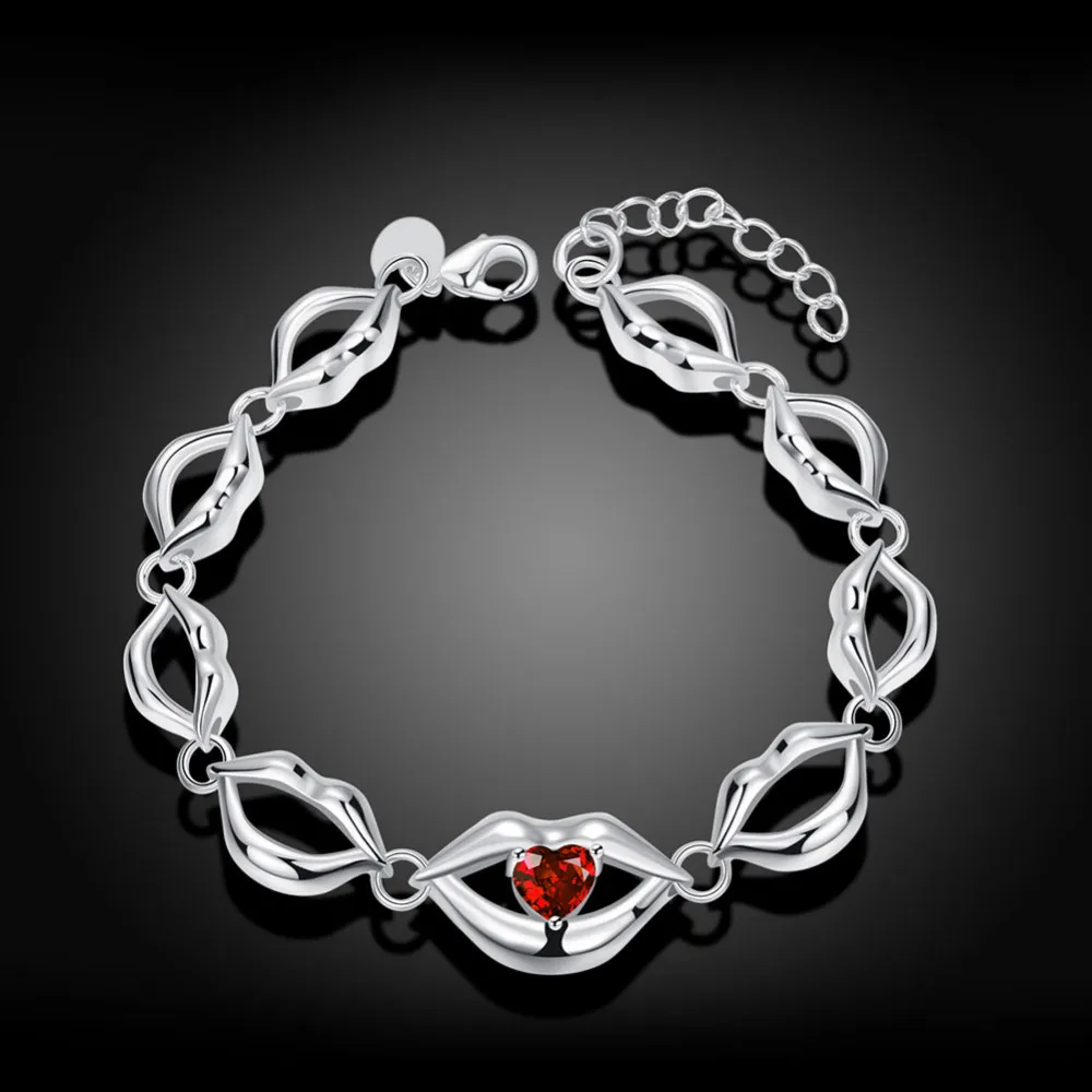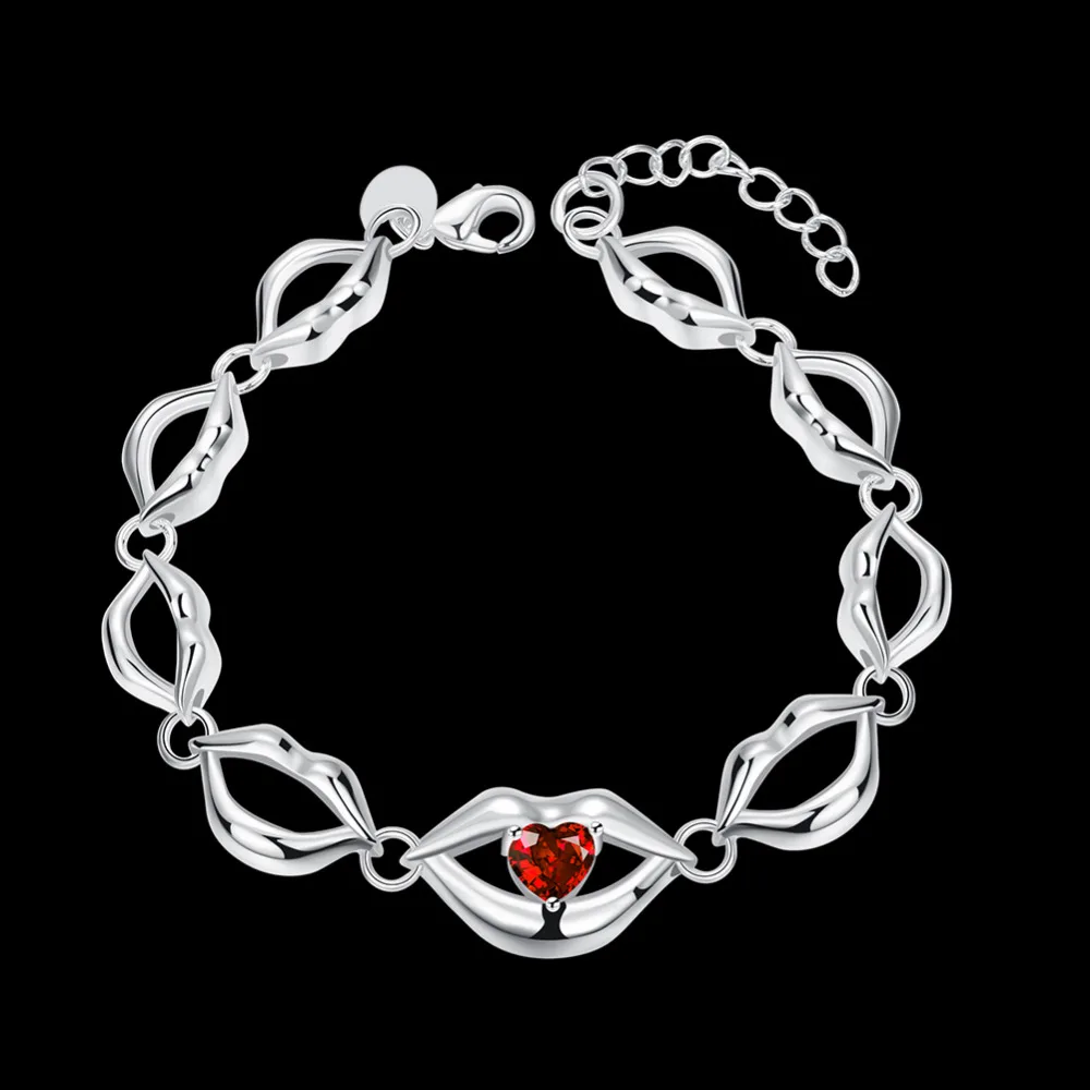 925 Sterling Silver Ruby Jewelry Sexy Red Lips Bracelet Fashion Mouth Shape Jewelry Bracelet For Women Girlfriend Gift