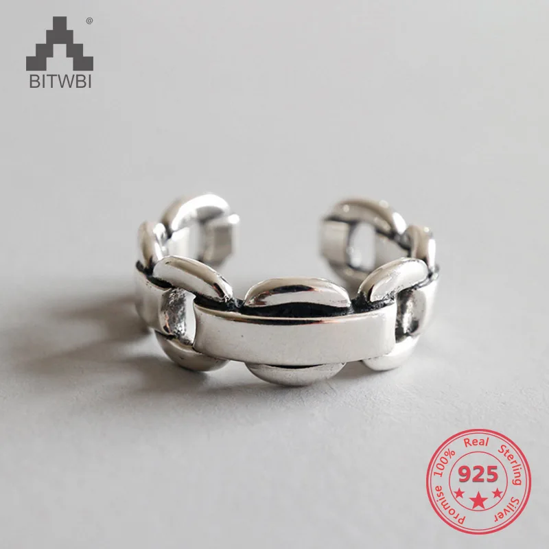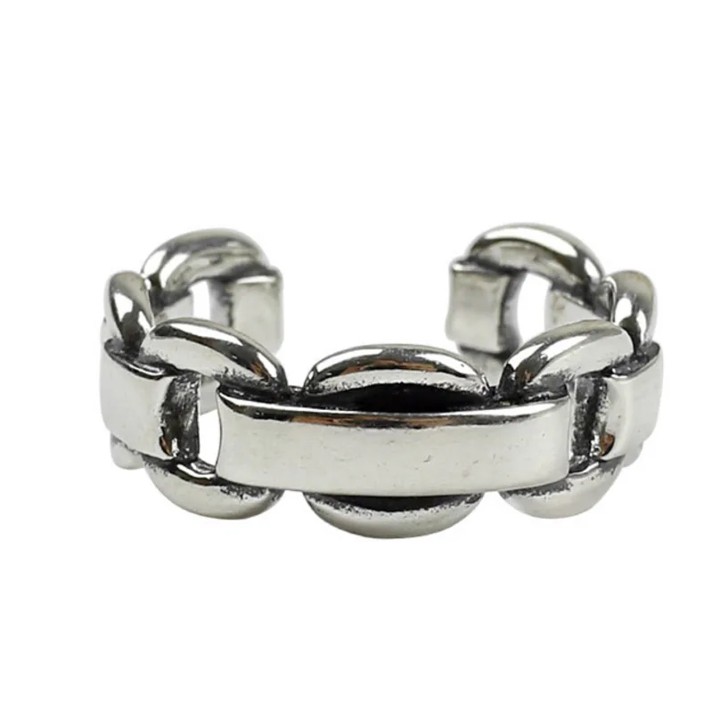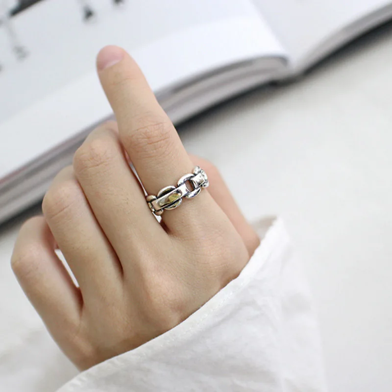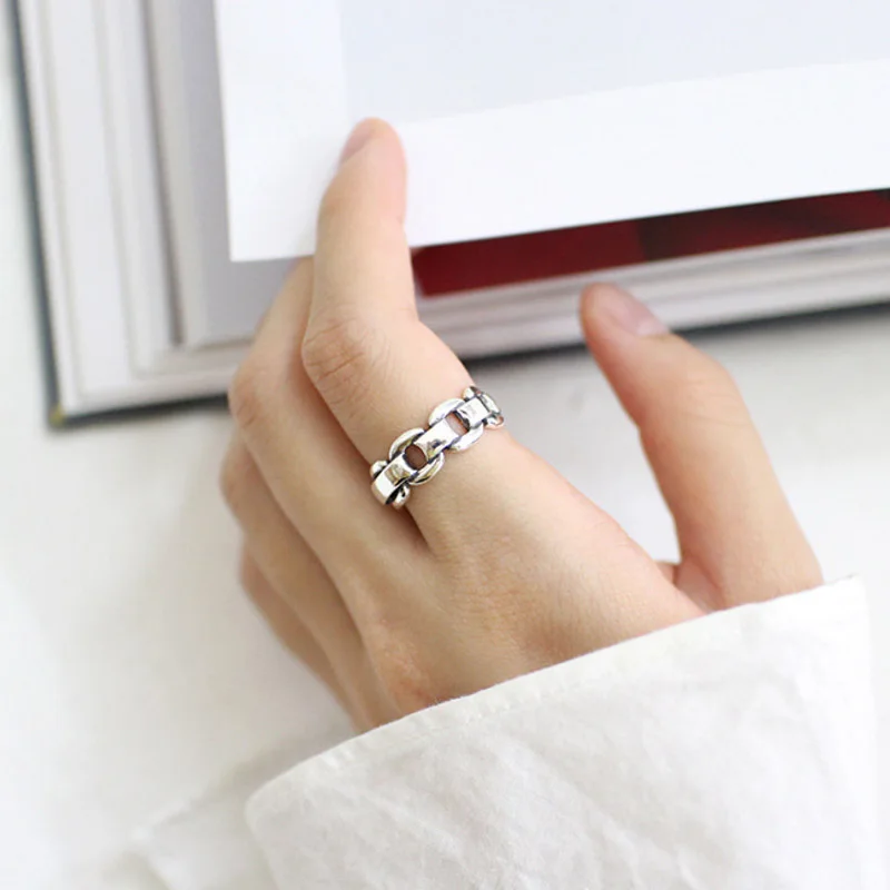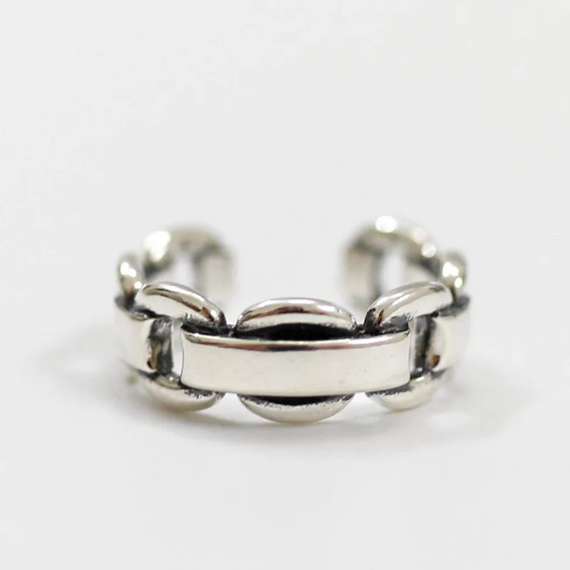 925 Sterling Silver Smooth Adjustable Chain Ring Opening Elegant Lady Vintage Jewelry Bijoux Femme