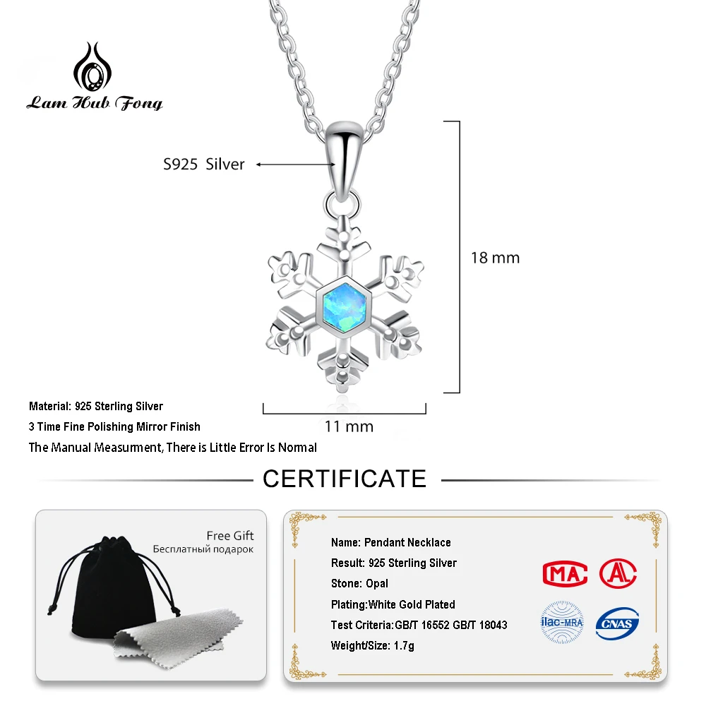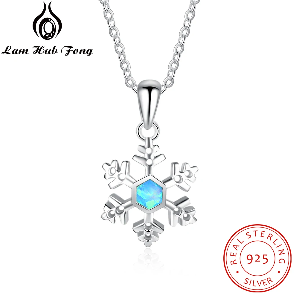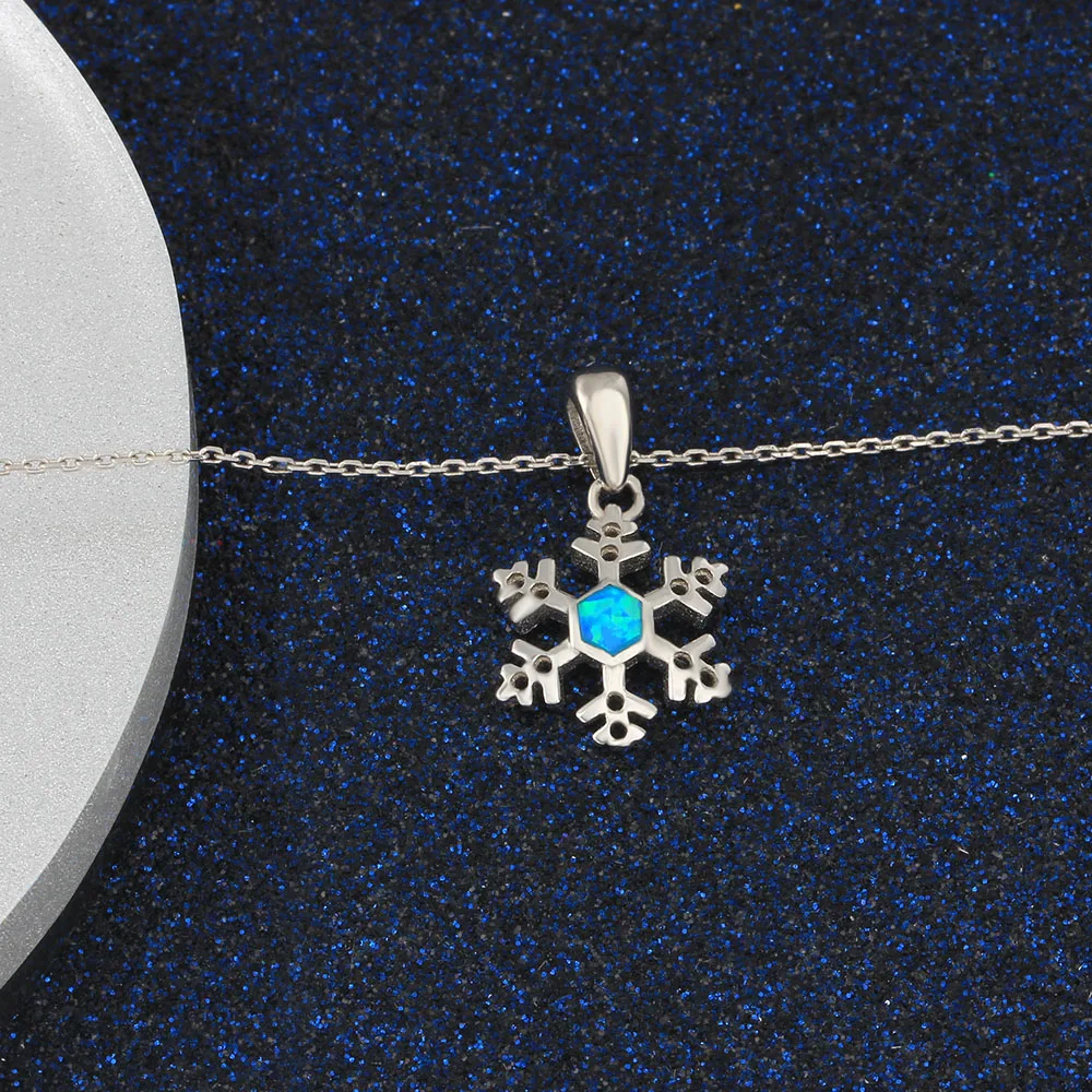 925 Sterling Silver Snowflake Pendant Necklace Blue Opal Chain Necklaces Valentine's D Fine Jewelry for Women(Lam Hub Fong)