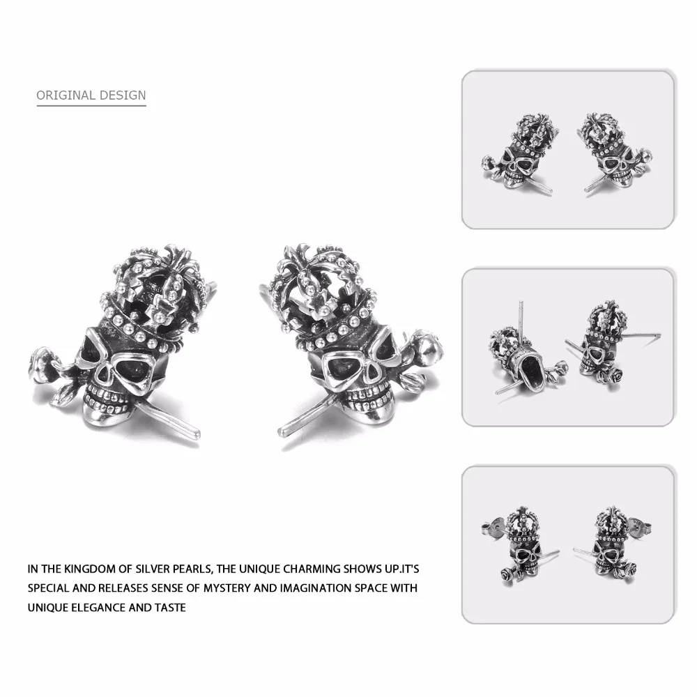 925 Sterling Silver Stud Crown Skull Earrings Vintage Party Unisex Prevent Allergy Rose Earrings 2020 New