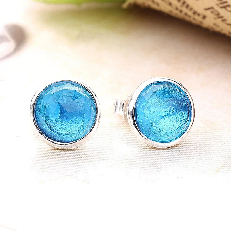 925 Sterling Silver Stud Earrings Twelvemonth Style 12 Color Round Earrings For Women Wedding Jewelry HER366
