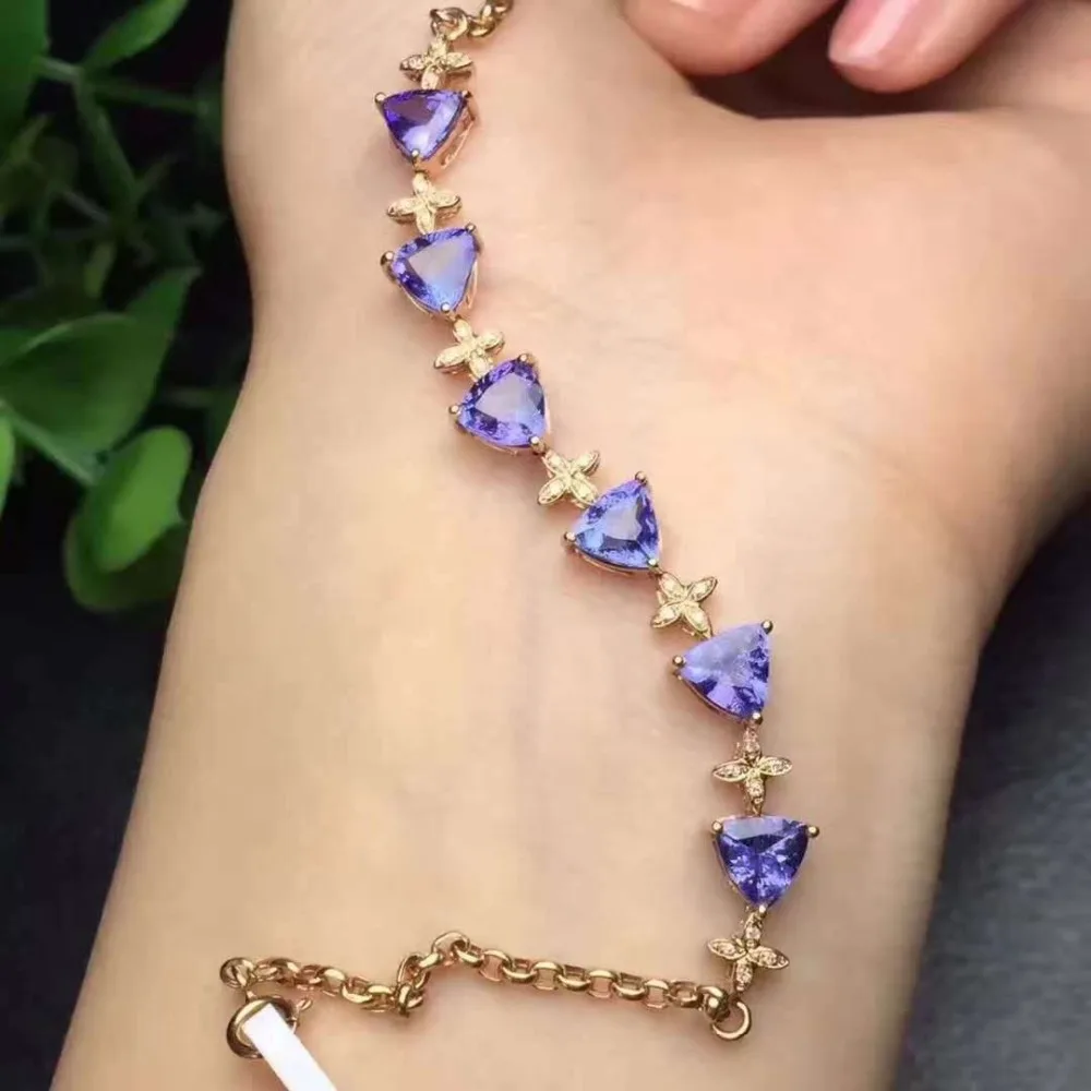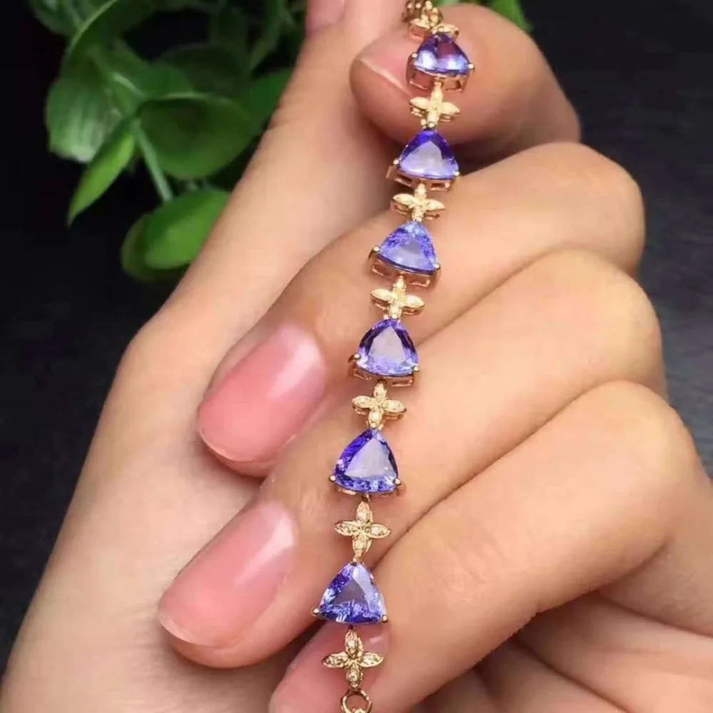 925 Sterling Silver Triangle Tanzanite Bracelet for Women Natural Gemstone 4 x 4 mm