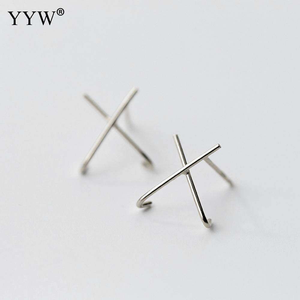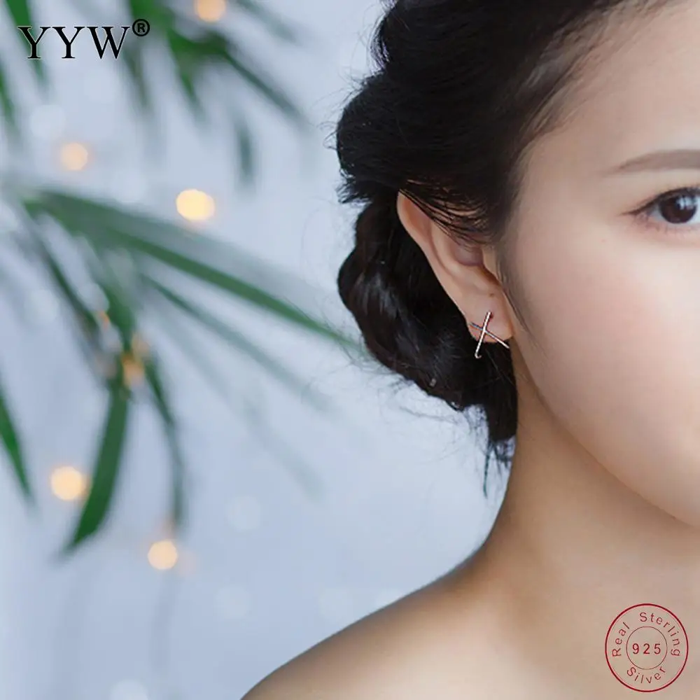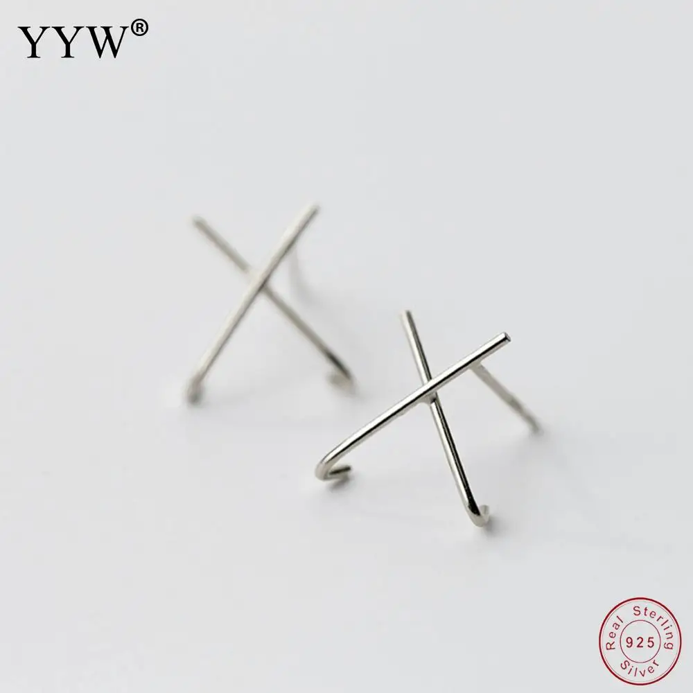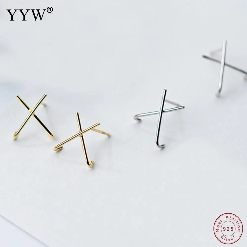 925 Sterling Silver X Style Stud Earrings For Women Personality Design Fashion Lady Sterling-silver-jewelry