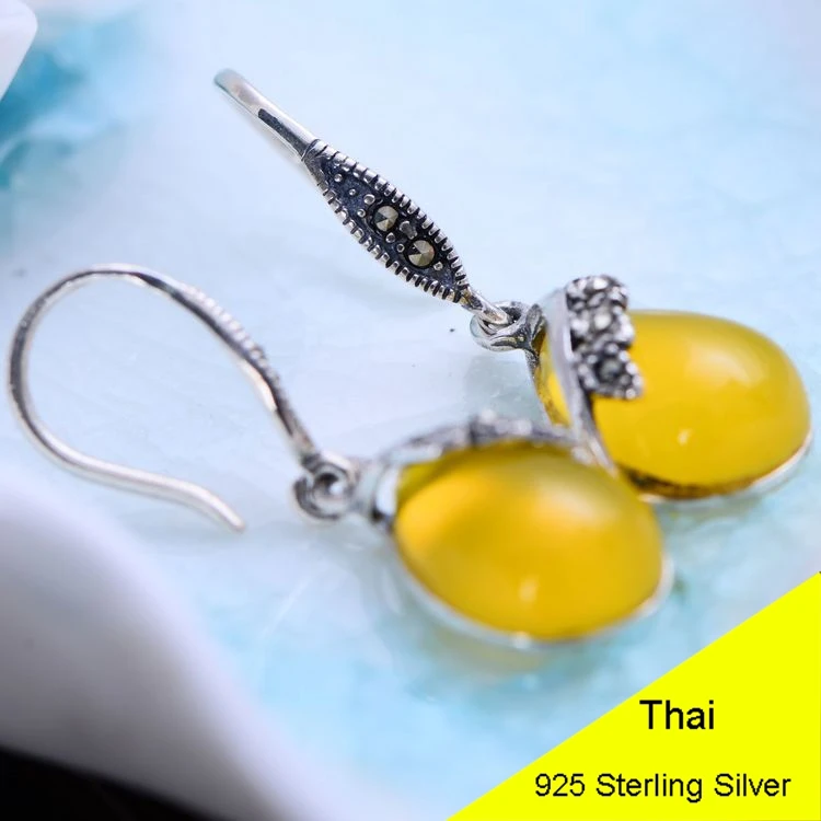 925 Sterling Silver Yellow & Green Chalcedony Waterdrop Drop Earring Women Thai Silver Gift Brincos Aretes Jewelry CH054646