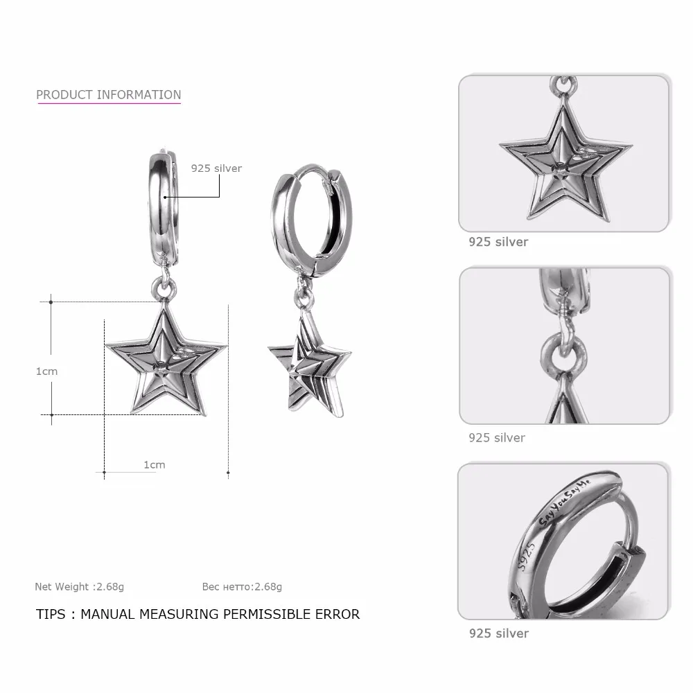 925 Sterling Star Earrings Wholesale Wedding&Engagement Retro Romantic Earrings Best Gifts 2020 New Arrival You Me