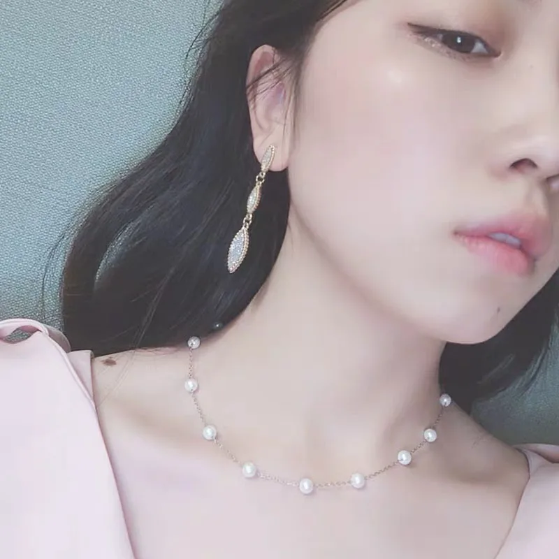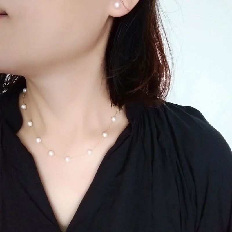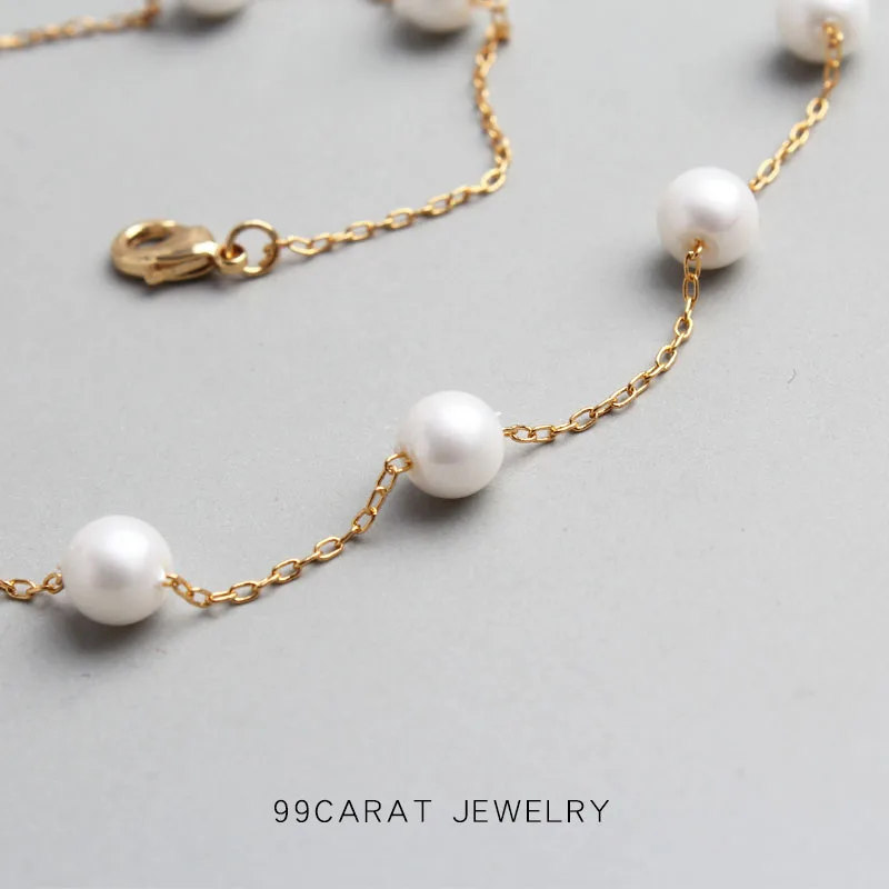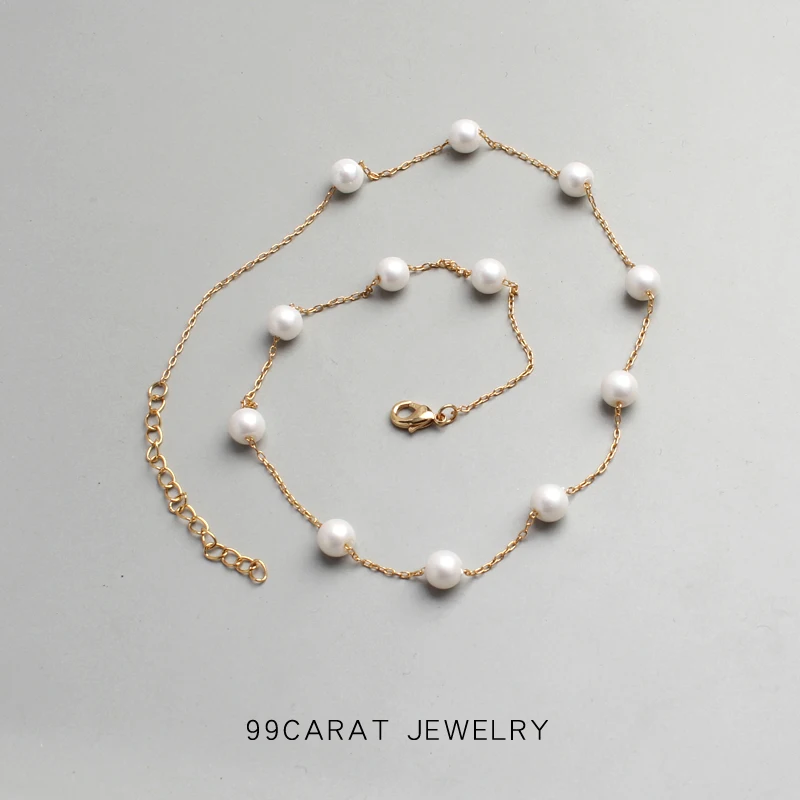 99 carat small fresh temperament clean imitation pearl 18K Gold clavicle chain simple commuter Necklace female vv