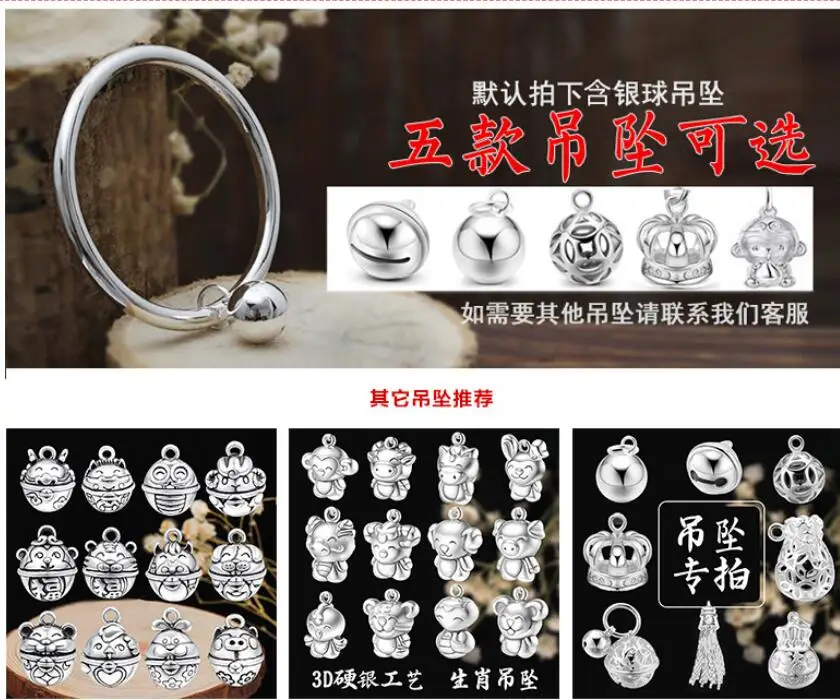 999 sterling silver bracelet children's Sen simple simple smooth closed palace bell solid