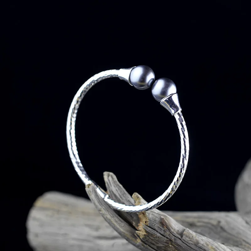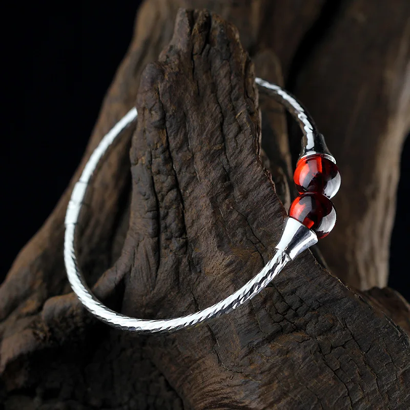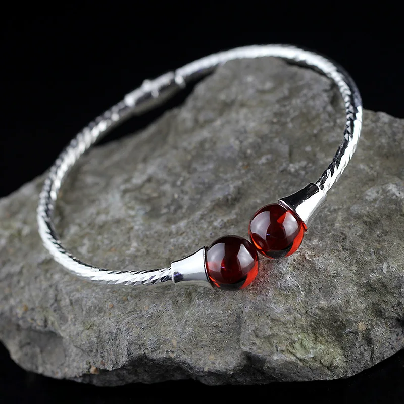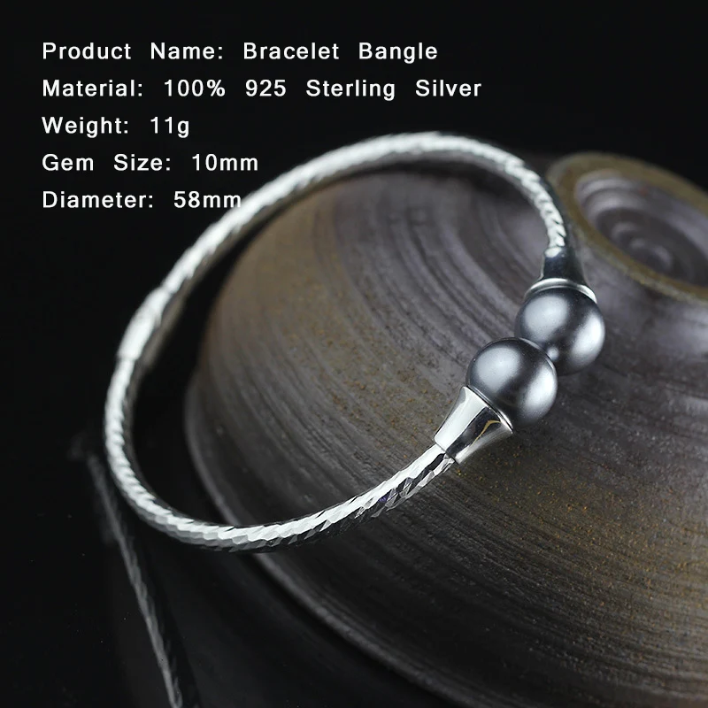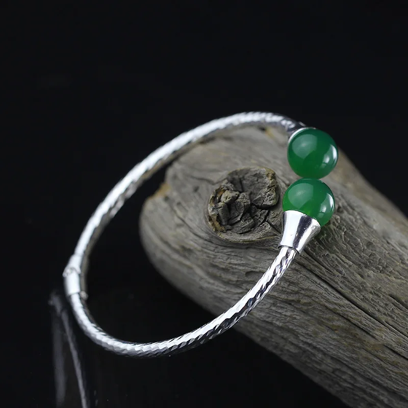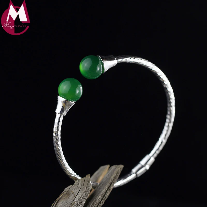 Aaa Green Jade 100% Real 925 Sterling Silver Bracelet For Women Jewelry Simple Spiral Garnet Black Pearls Bangle Sb45