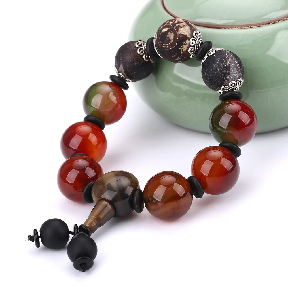 AAA Natural agate Men Fashion Bracelet Black Agate Jewelry Pop Gem Gift Love Handmade Dzi Bead 925 silver Health bracelet Yoga
