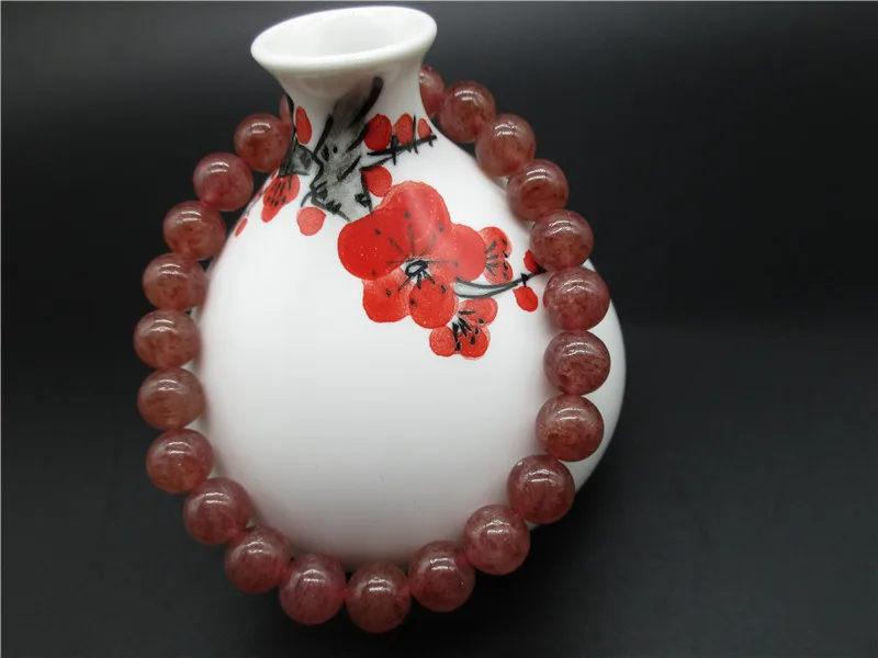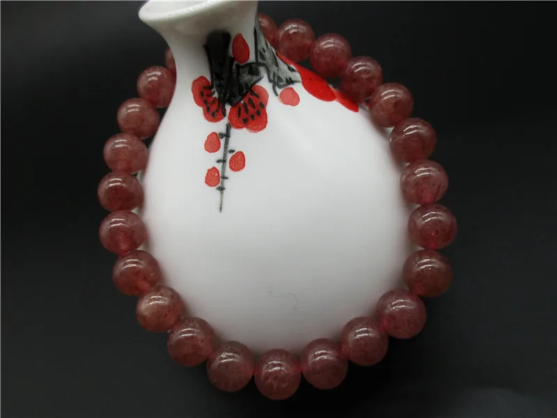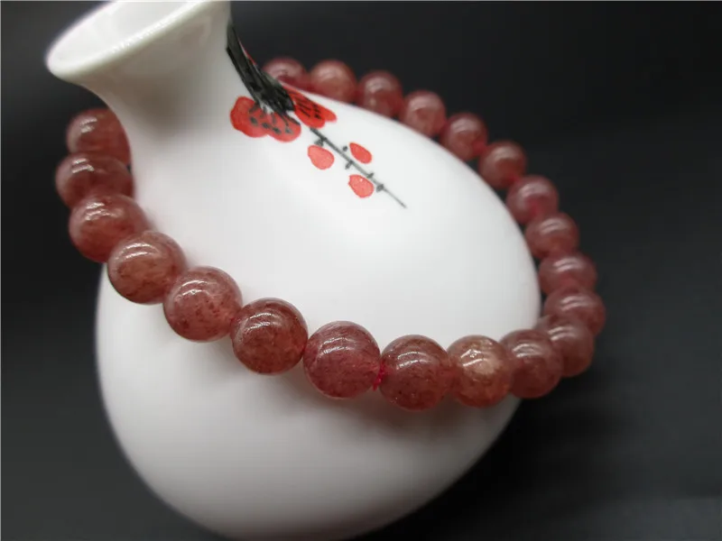 AAA natural Strawberry crystal Bead Bracelets Women Men Jewelry Christmas gift Drop Shipping 8mm