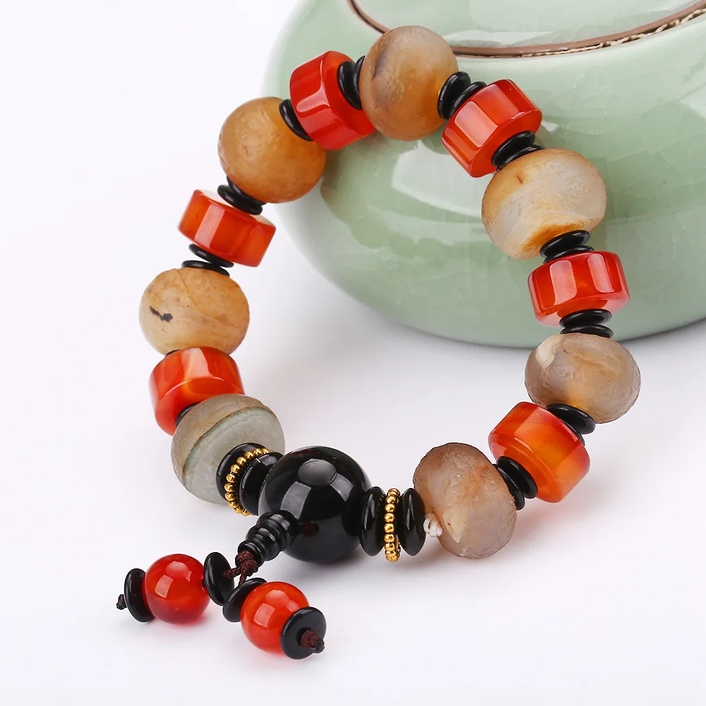 AAA Original Red Agate Male Bracelet Buddha Natural Stone Jewelry Power Chakra Healing Handmade White Jade Green Jade Bracelet