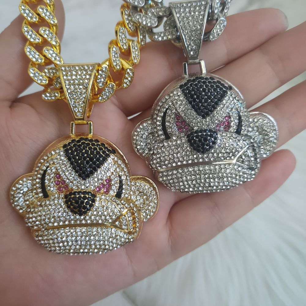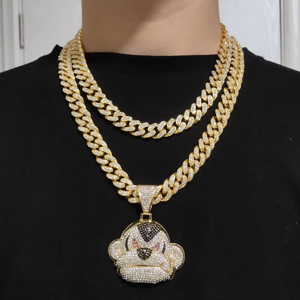 AAA Rhinestone Iced Out Miami Cuban Link Chain Orangutan Monkey Pendant Necklace For Men's Chains Hip Hop Jewelry On The Neck
