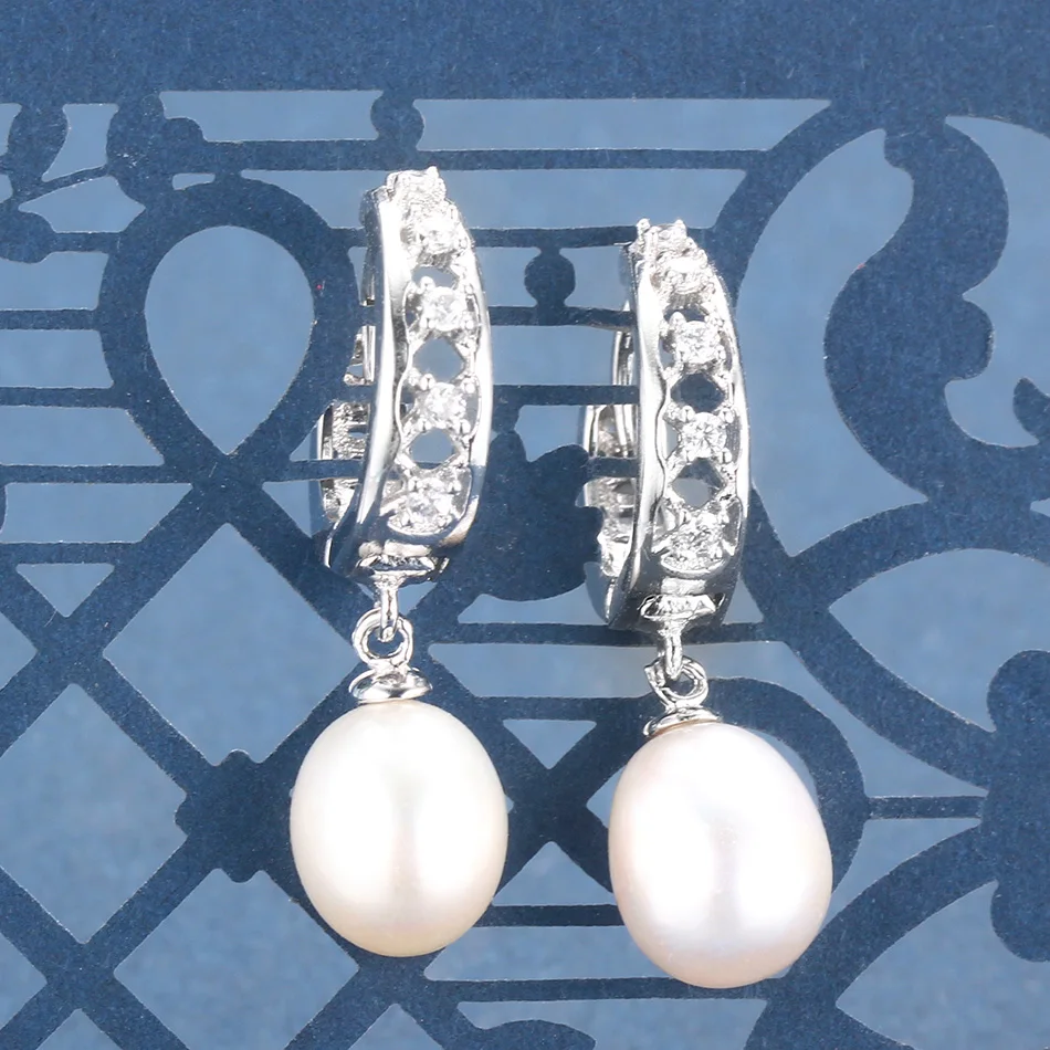 AAAA Top Quality 100% Natural Pearl Drop Earrings For Women Fashion Elegant Party Zircon 925 Sterling Silver Jewelry